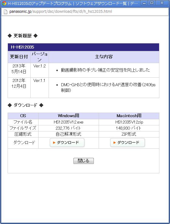 キットレンズで手元に来たときには、すでにver.1.1で、これをver.1.2にアップデート。動画のときの手振れ補正がよくなったらしい。気になったことはないけどせっかくなのでアップデート。