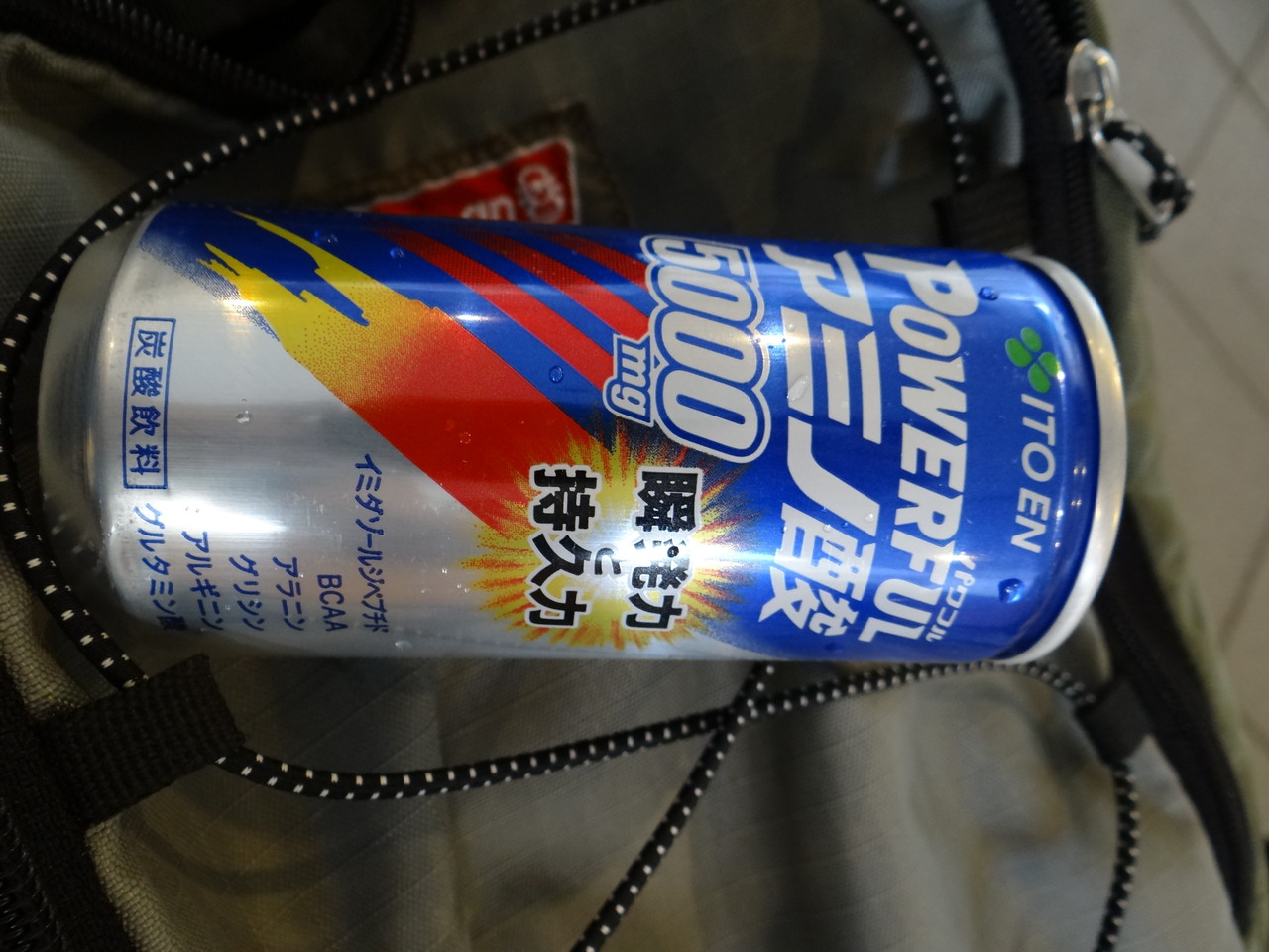 プールからあがってあまりのだるさに伊藤園パワフルアミノ酸500mg 150円をごくごく。