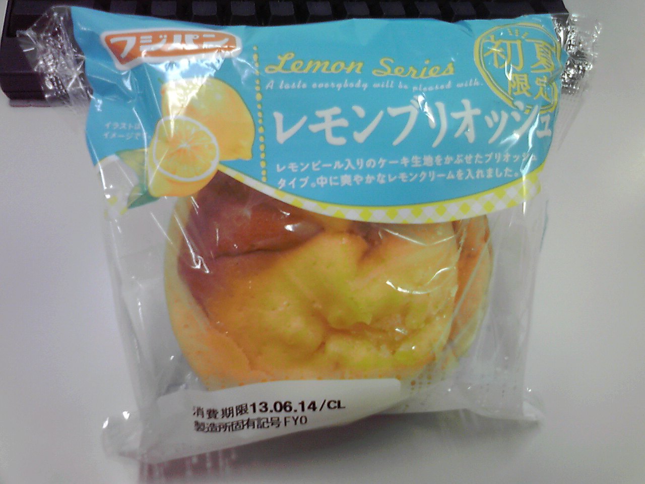 練習後の補食: 大豆ペプチド数グラム、フジパン レモンブリオッシュ初夏限定(404kcal,たんぱく質5.7g,脂質19.5g,炭水化物51.5g).