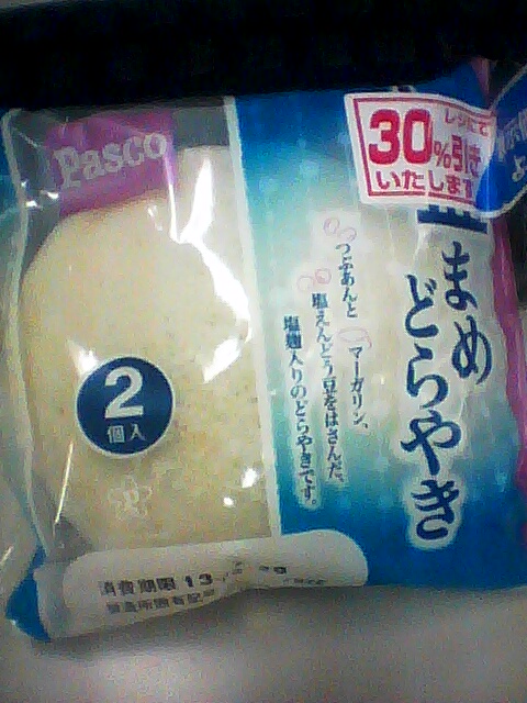 練習後の補食: 大豆ペプチド数グラム、Pasco 塩まめどらやき(229kcal,たんぱく質3.0g,脂質6.4g,炭水化物39.8g *2)。