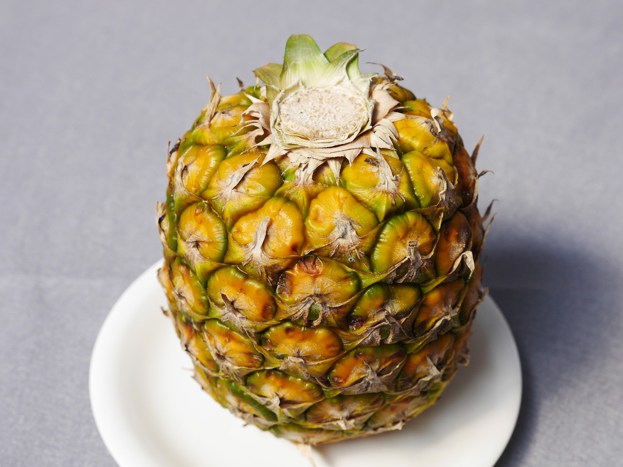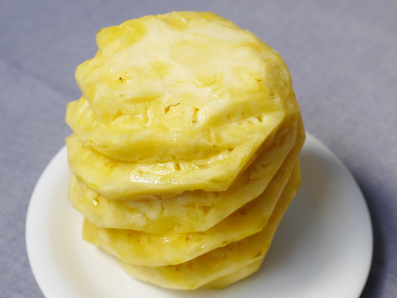 スーパーで黄色になってよく熟してそうなパイナップルを3/4投入。ちゃんとクルクル剥きした。残りの1/4はあとで食べる。