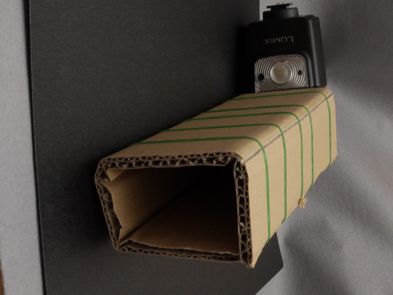 こんな感じでダンボールスヌートっぽいものをつくって撮った。光が漏れないから透明感がでたかな。