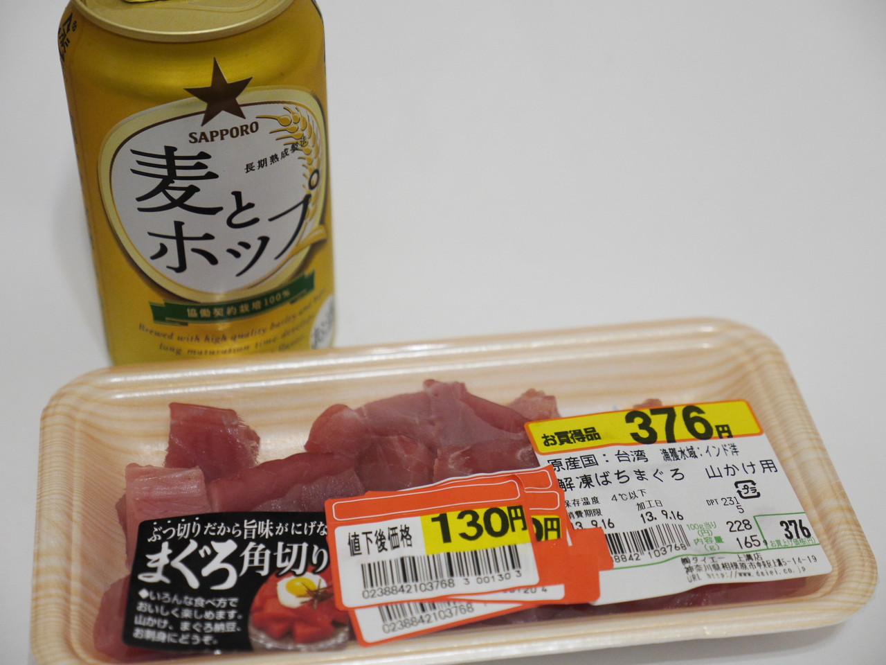 帰りにダイエーに寄って安くなっていたマグロを買って帰宅。