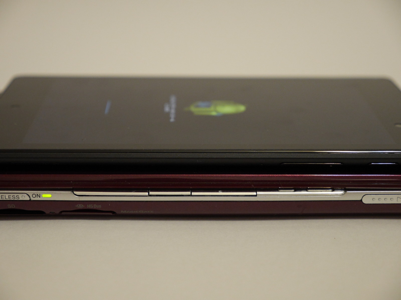 厚味はまったく比較にならないくらいVAIOは分厚い。VAIO type Pはポケットに入るという過激な宣伝をしてたが、nexus7なら入らんこともない。