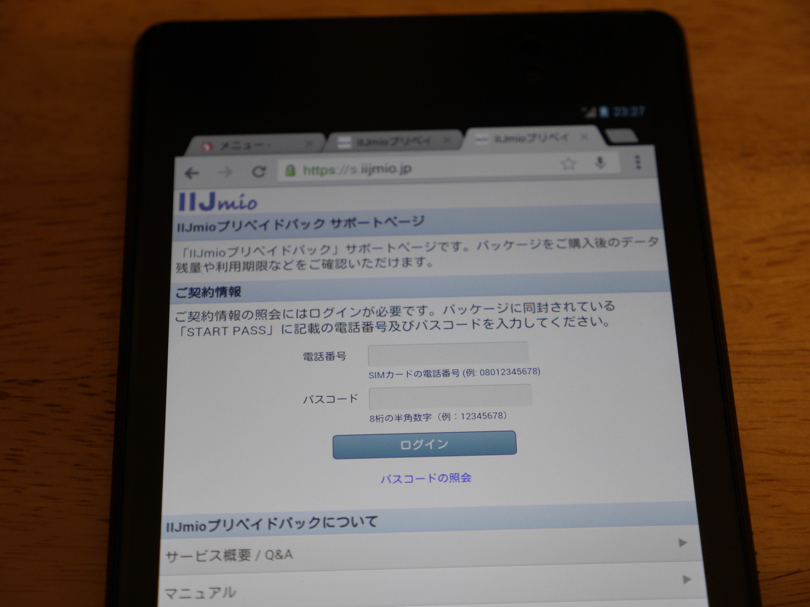 nexus7を買ったときについてきたIIJmioプリペイドパック。3ヶ月有効ででもたったの500MBなので使いどころが難しいなぁと思っていたが、通勤途中で京王線調布駅と新宿駅がWiMAX来てないのと、トンネルでしばしば不通になってチョイ不便なので、さっさと開通することにした。