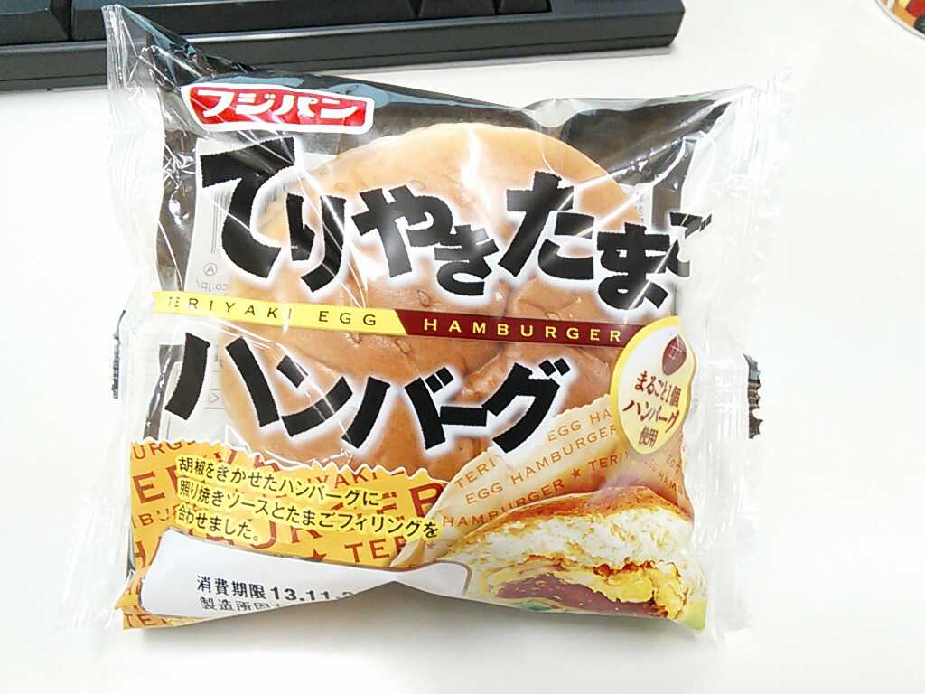練習直後の補食: フジパン てりやきたまごハンバーグ(323kcal,たん白質10.3g,脂質15.1g,炭水化物36.5g)。