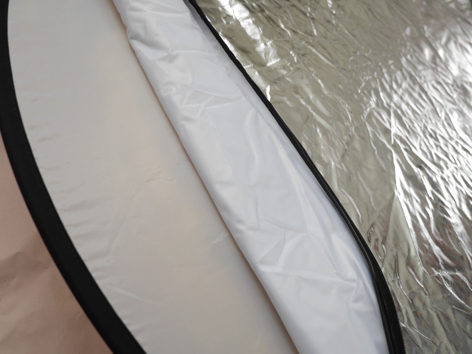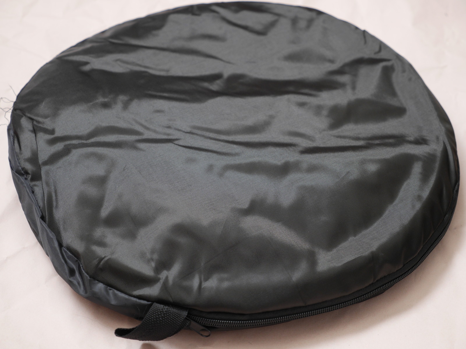つぎは直径110cmのレフ板。半透明のレフ板のまわりにカバーをかけてつかう。カバーはジッパーを閉めると袋状になる。カバーの色は銀と黒か、ひっくりかえすと金・白になる仕様。そこそこ重い+厚みがあるので手持ちのカメラカバンには入らない。そもそも屋外で使う勇気は今のところないけど。