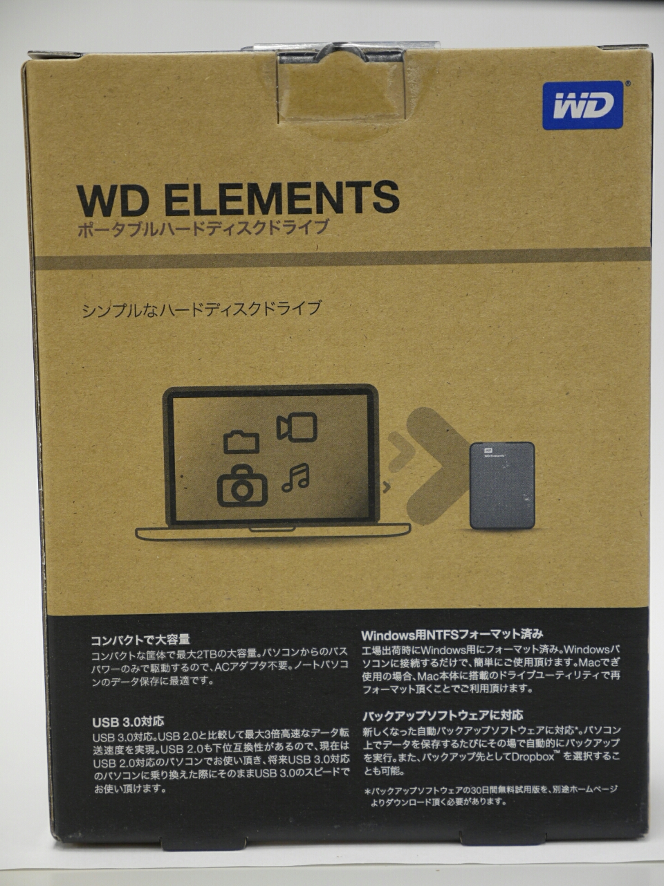 デジカメの写真や動画を3.5インチのハードディスク I-O DATA HDC-AET3.0Kに保存している。バックアップはデバイスのリスクヘッジとして光デバイス(CD/DVD/BD)にも保存。さらにディザスタリカバリとして自宅とは別のところに置いたHDDにも保存、ということをしている。ネットワーク経由でのファイル転送は遅いのでHDDを持ち歩いてコピーしていたが、3.5インチのHDDは重い。耐衝撃性も2.5インチに劣るのでポータブルタイプのHDDを買うことにした。