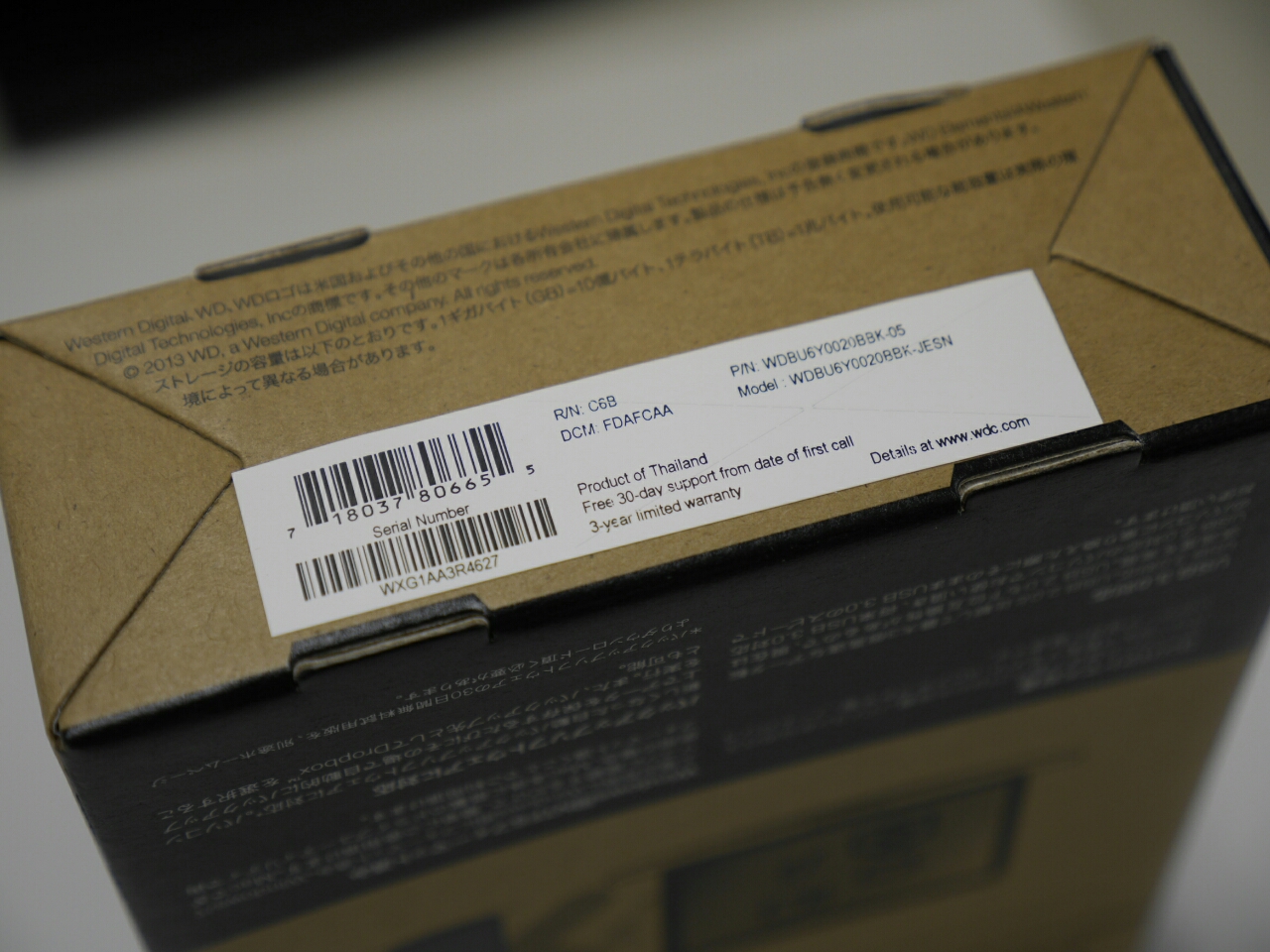 とかいてあった。Product of Thailand。そういえば2011年にタイの大洪水でHDDが値上がりしたなぁ。