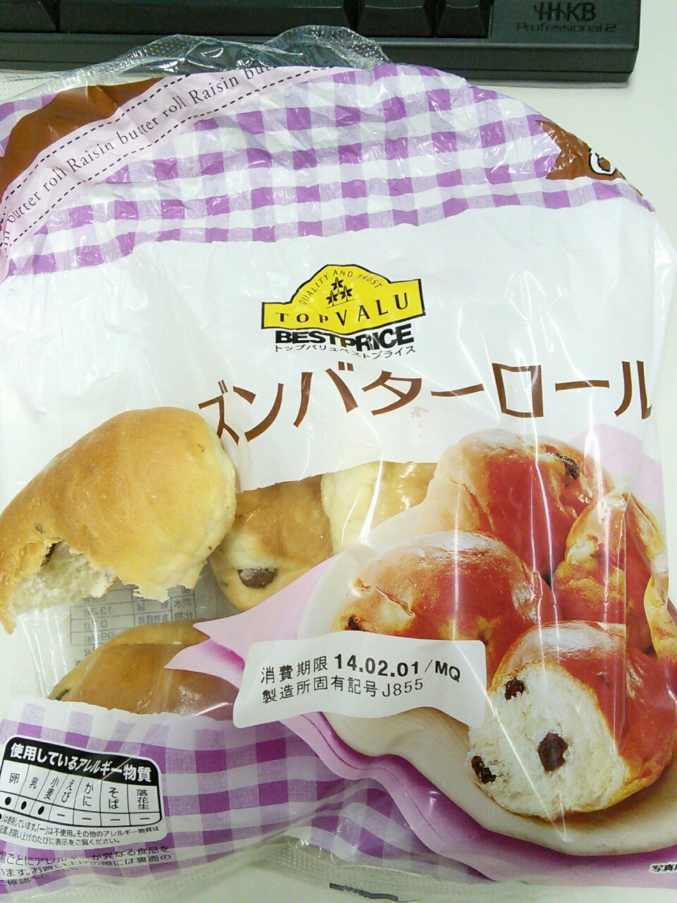 練習後の補食: ペプチド数グラム、TV レーズンバターロール(84kcal,たん白質2.4g,脂質2.2g,炭水化物13.2g *5)。