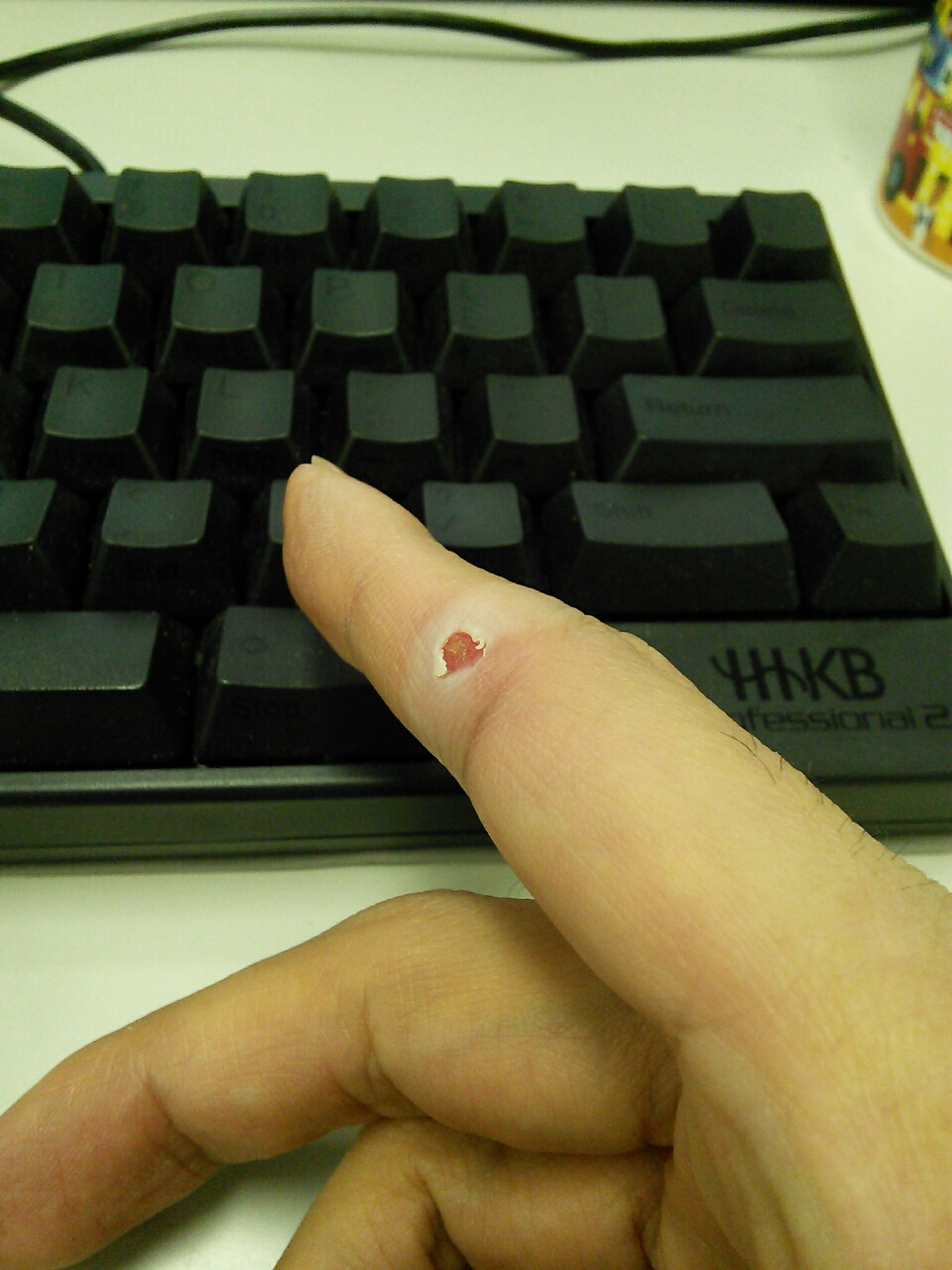サランラップで密封療法で皮がちょっと張ってきたけどまだ水が滲みる。
