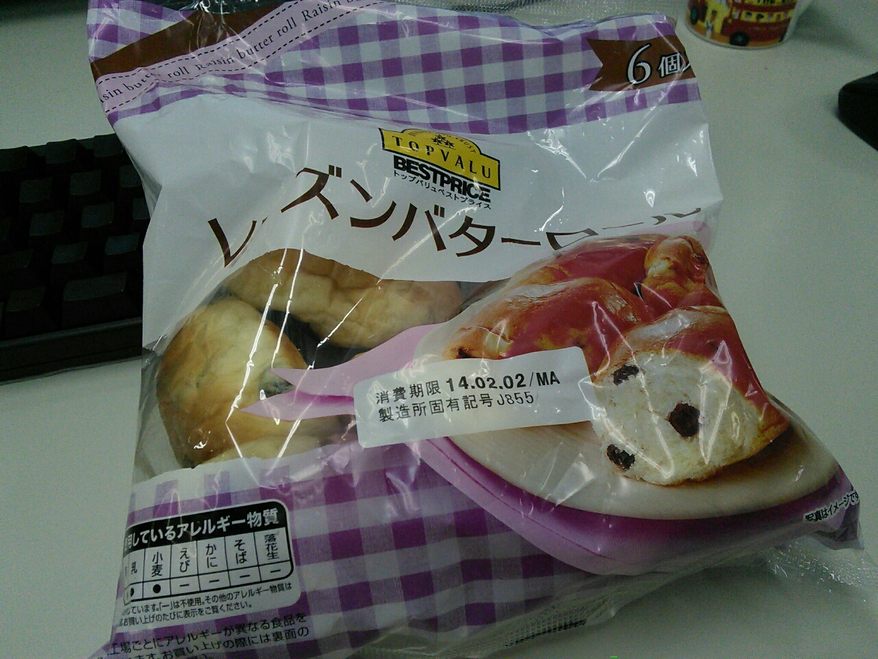 練習後の補食: ペプチド数グラム、TV レーズンバターロール(84kcal,たん白質2.4g,脂質2.2g,炭水化物13.2g *6)。