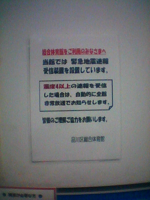 震度4以上で自動館内放送がかかるらしい。プールだとどこに逃げたらいいんだろうか。