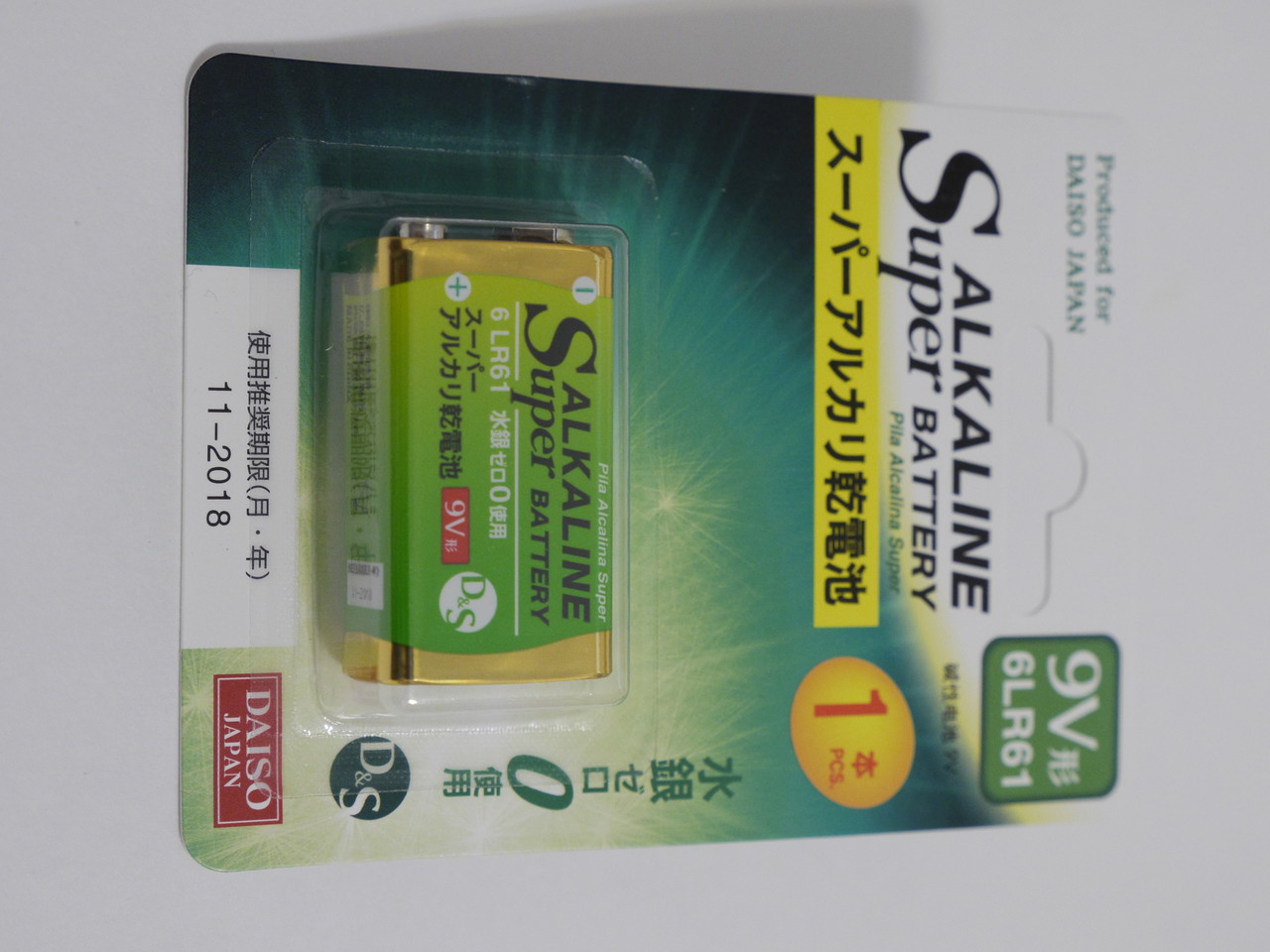 電池はそういえば懐かしい006P。近くのスーパーにいってみたが意外と売ってないので百均へ。2種類あって一方は100円、もう一方は150円だったが、違いがわからなかったので100円ので。微妙に型番がちがっているのでしらべてみたら、中身の電池が角型か単6かの違いのようだ。