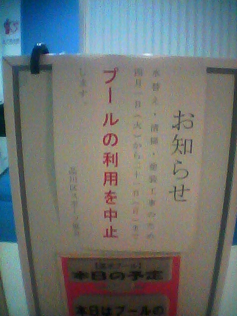 ここのプールは明日からしばらくは塗装工事でお休みなので代りのプールを探さないとなぁ。