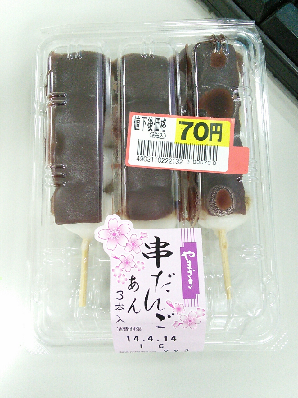 練習後の補食: ペプチド数グラム、やまざき串だんご あん。