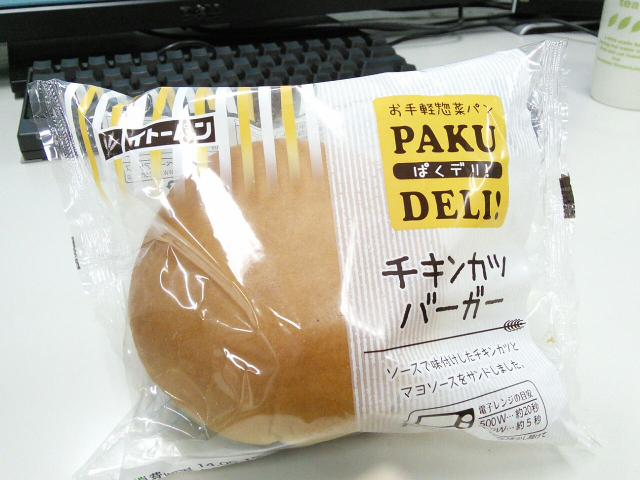 練習後の補食: ペプチド数グラム、イトーパン チキンカツバーガー(351kcal,たん白質9.1g,脂質20.7g,炭水化物32.1g)。