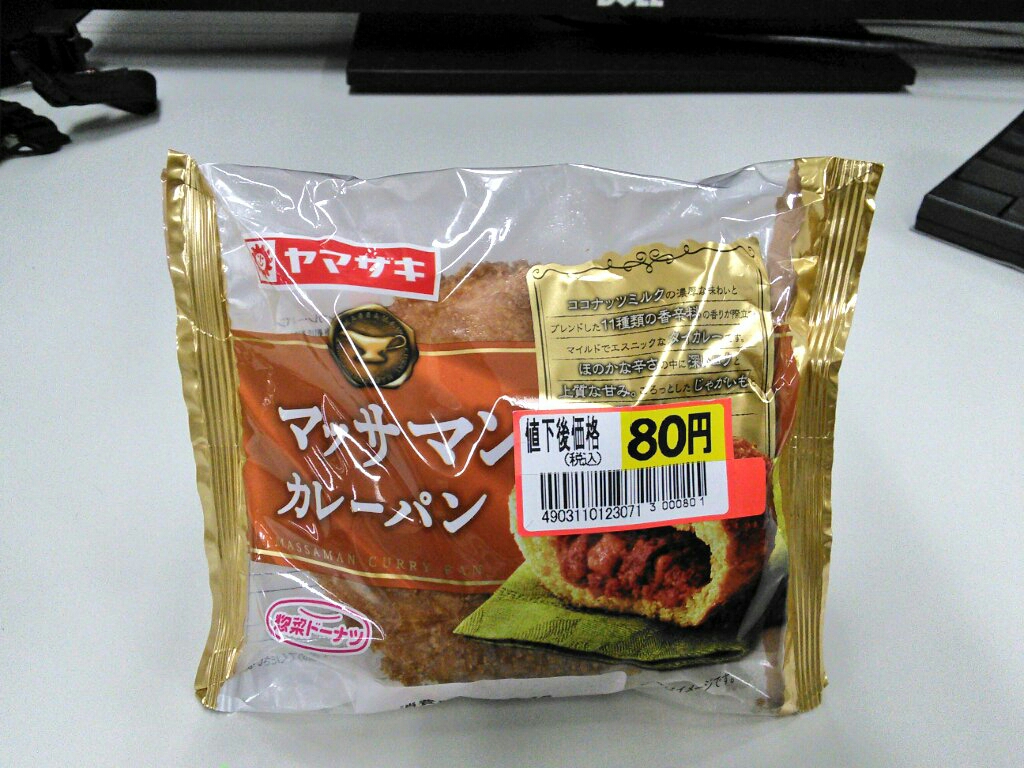 練習後の補食: ペプチド数グラム、山崎 マッサマンカレー(371kcal,たん白質7.7g,脂質21.2g,炭水化物37.4g)。