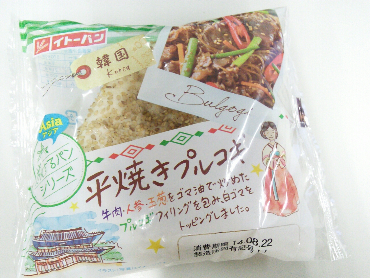 練習後の補食: ペプチド数グラム、イトーパン 平焼きプロコギ (370kcal,たん白質7.4g,脂質21.4g,炭水化物37.0g)。