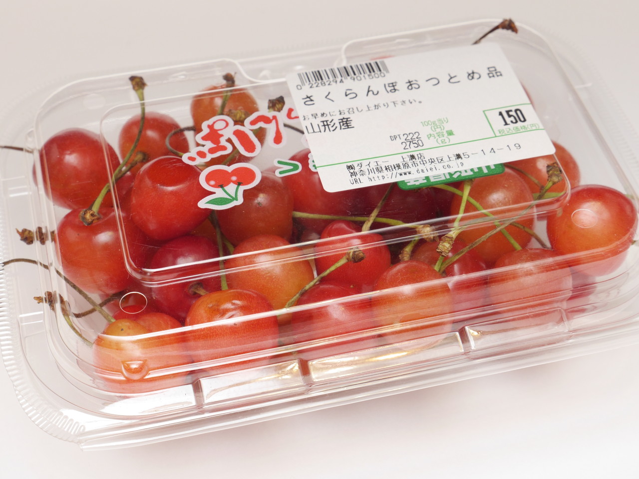 さくらんぼ150円。パックをあけてみたらちょくちょく痛んでいたので選別して。