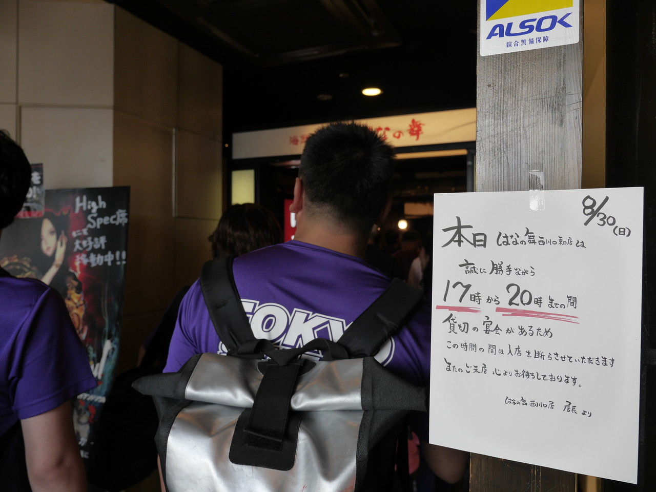 駅前のはなの舞でうちあげ。80人overなので大部屋だけにおさまらず小部屋も多数でばらばら。