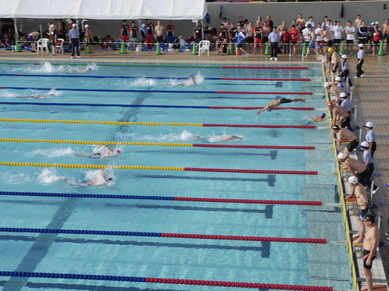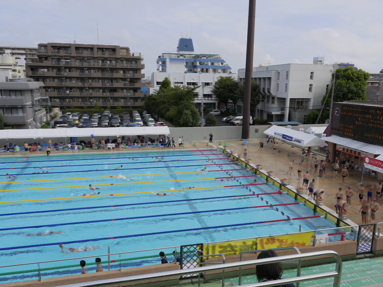 ここのプールはコースエンドの水深が2mなので、ふだんの大会の1.4mと比べるとかなり深い。