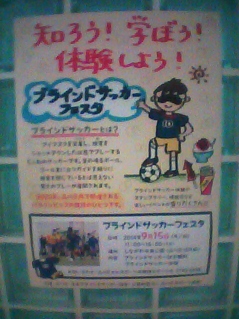 9/15にブラインドサッカーフェスタがあるらしい。