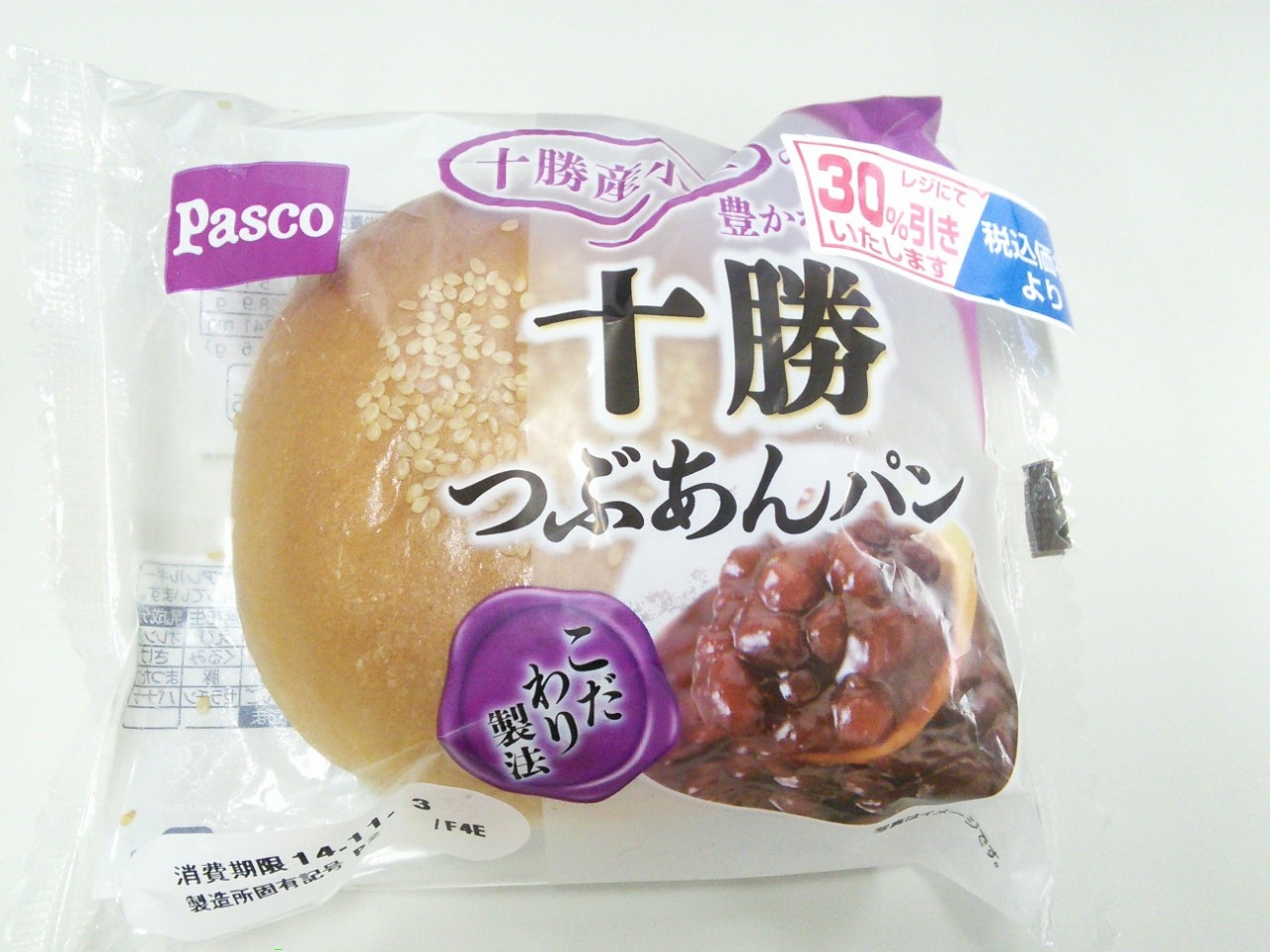 練習後の補食: ペプチド数グラム、Pasco十勝つぶあんパン(356kcal,たん白質8.5g,脂質5.1g,炭水化物68.9g)。