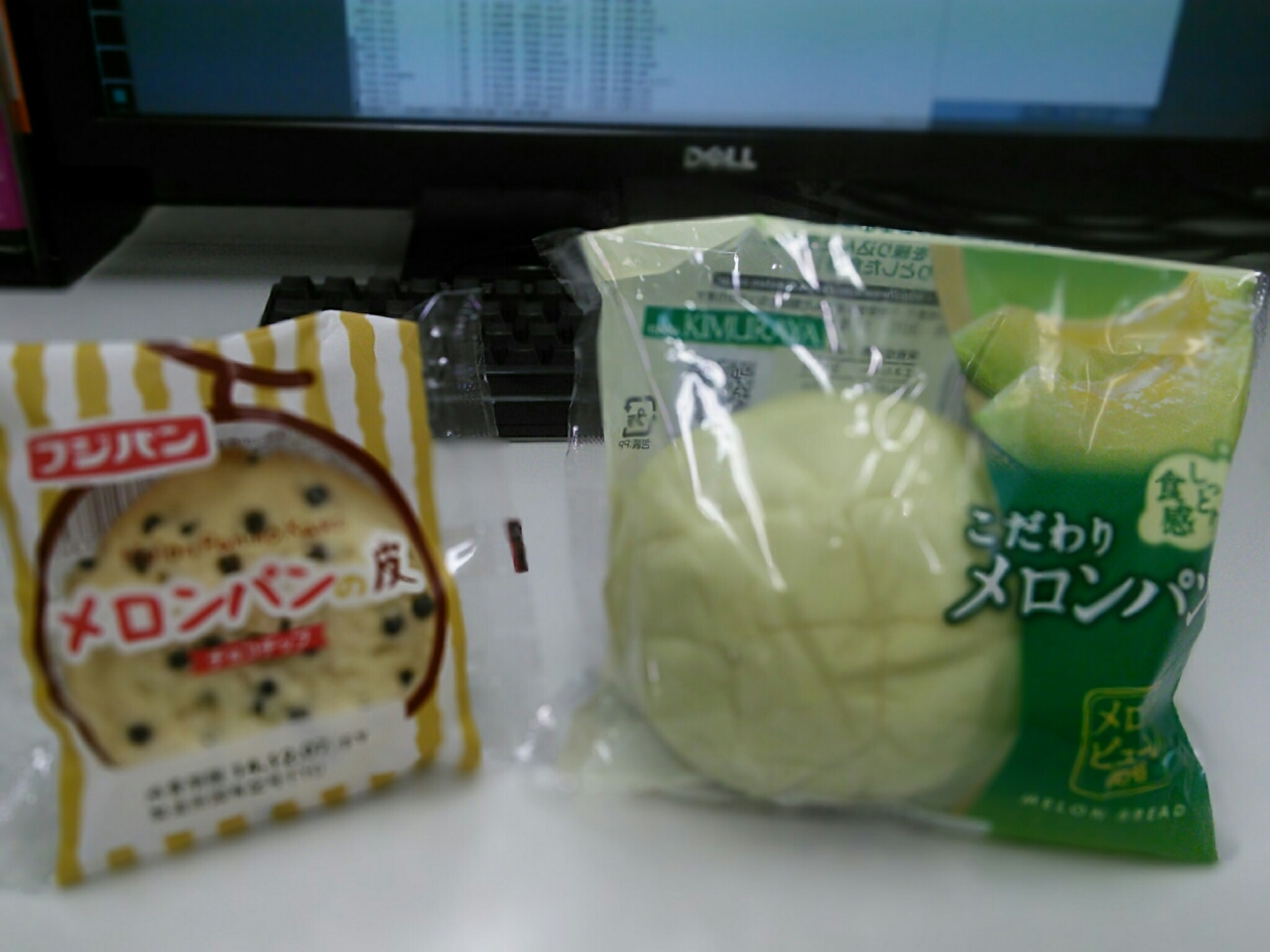 ちなみに、フジパン メロンパンの皮チョコチップ(217kcal,たん白質2.8g,脂質9.0g,炭水化物31.3g)と、サクサク感をだすためにマーガリンが多い。