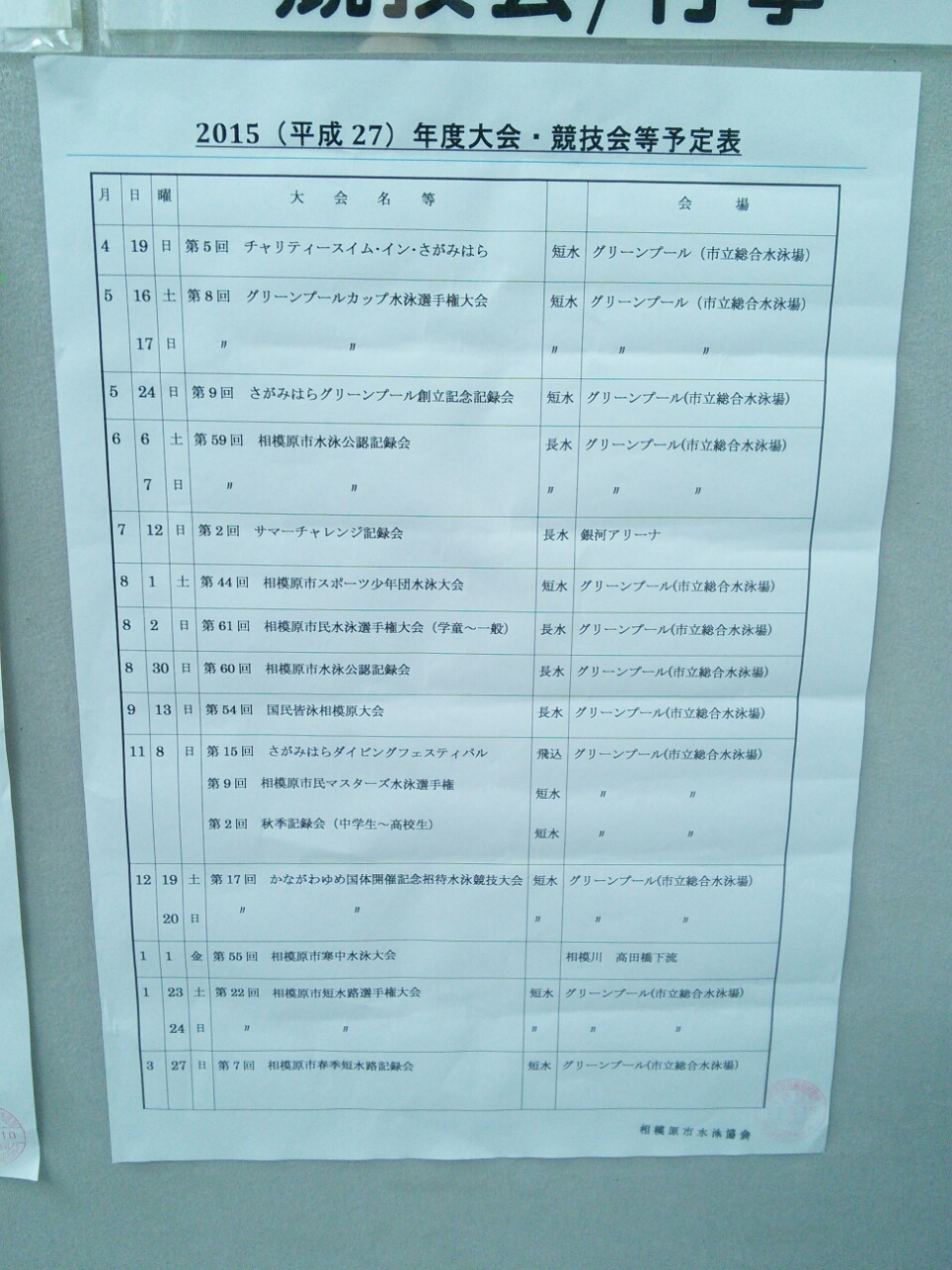 グリーンプール練習会。長水路はすでに営業を開始しているが水がぬるい短水路で。11時までは混んでいたのに11時を過ぎたら急にがらがらに。