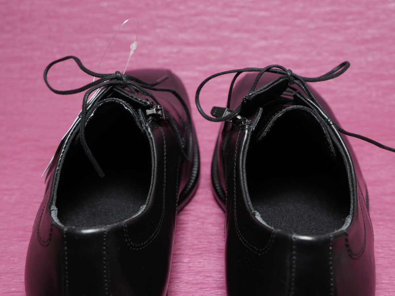 履き口はファスナー付きで、いちいち紐を結ばなくてもよいようになっている、はずだったが、実際につかってみるとファスナーが(たぶんデザイン優先のため)短くて、ファスナーを開いても足を入れにくい。靴べらほしい。ちなみに、ファスナーから浸水しないように袋構造になってる。