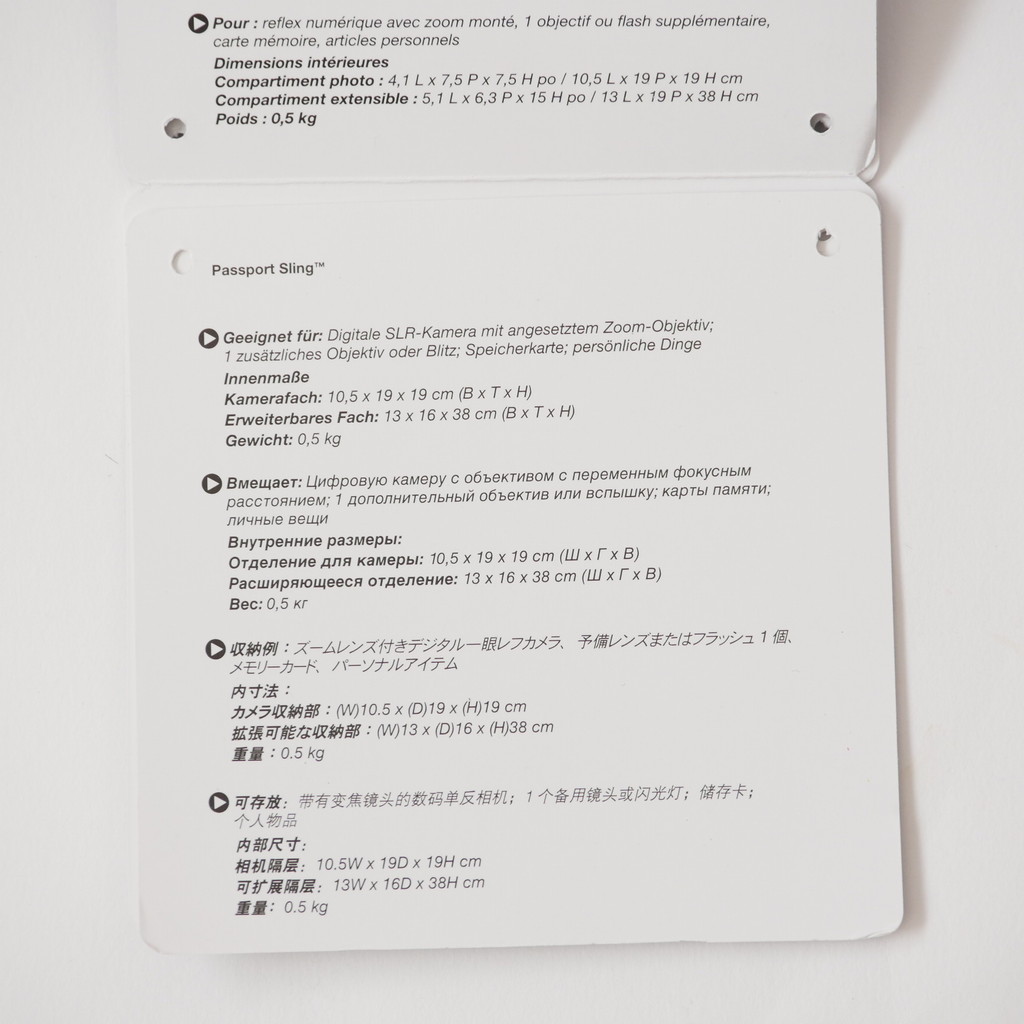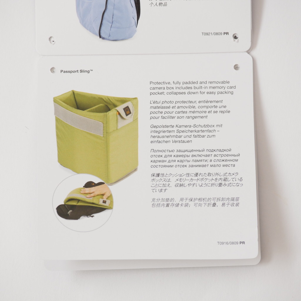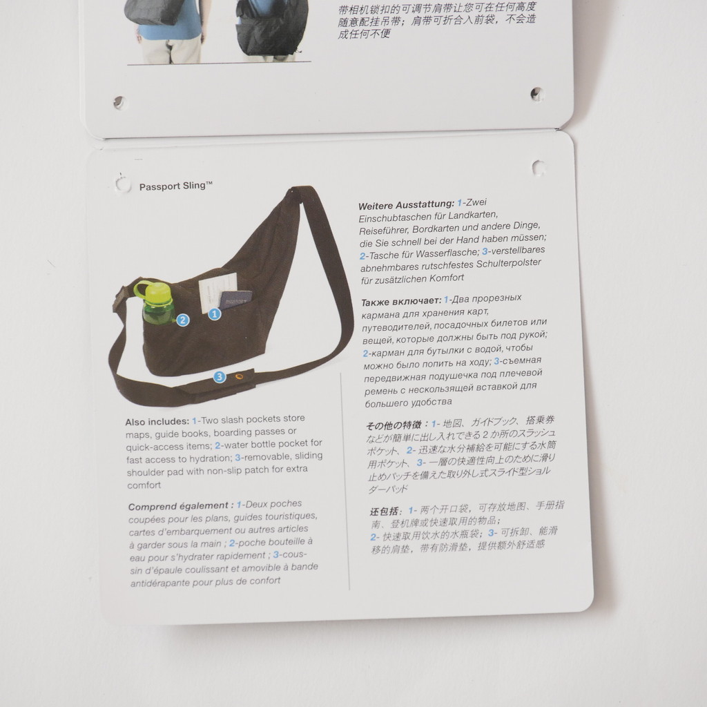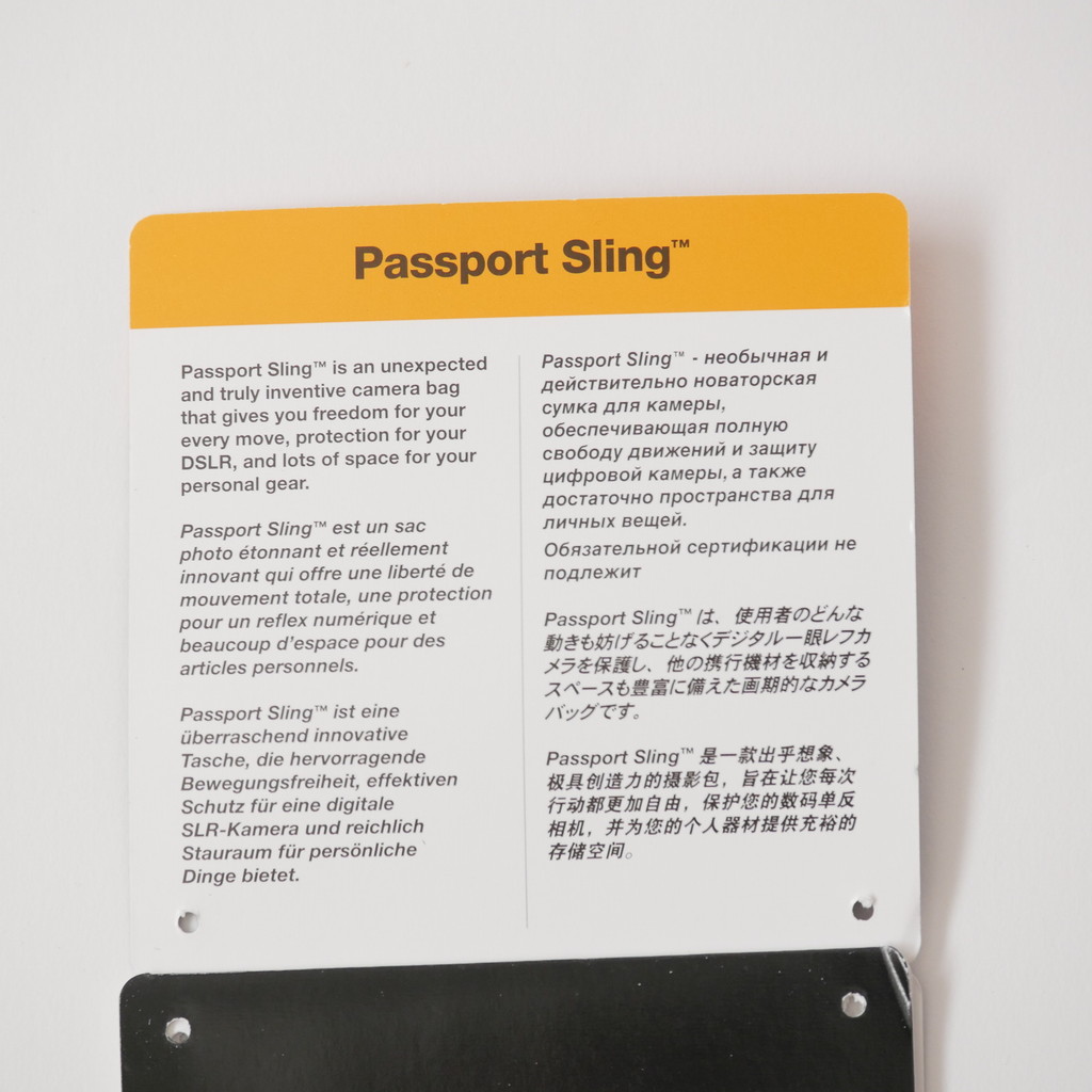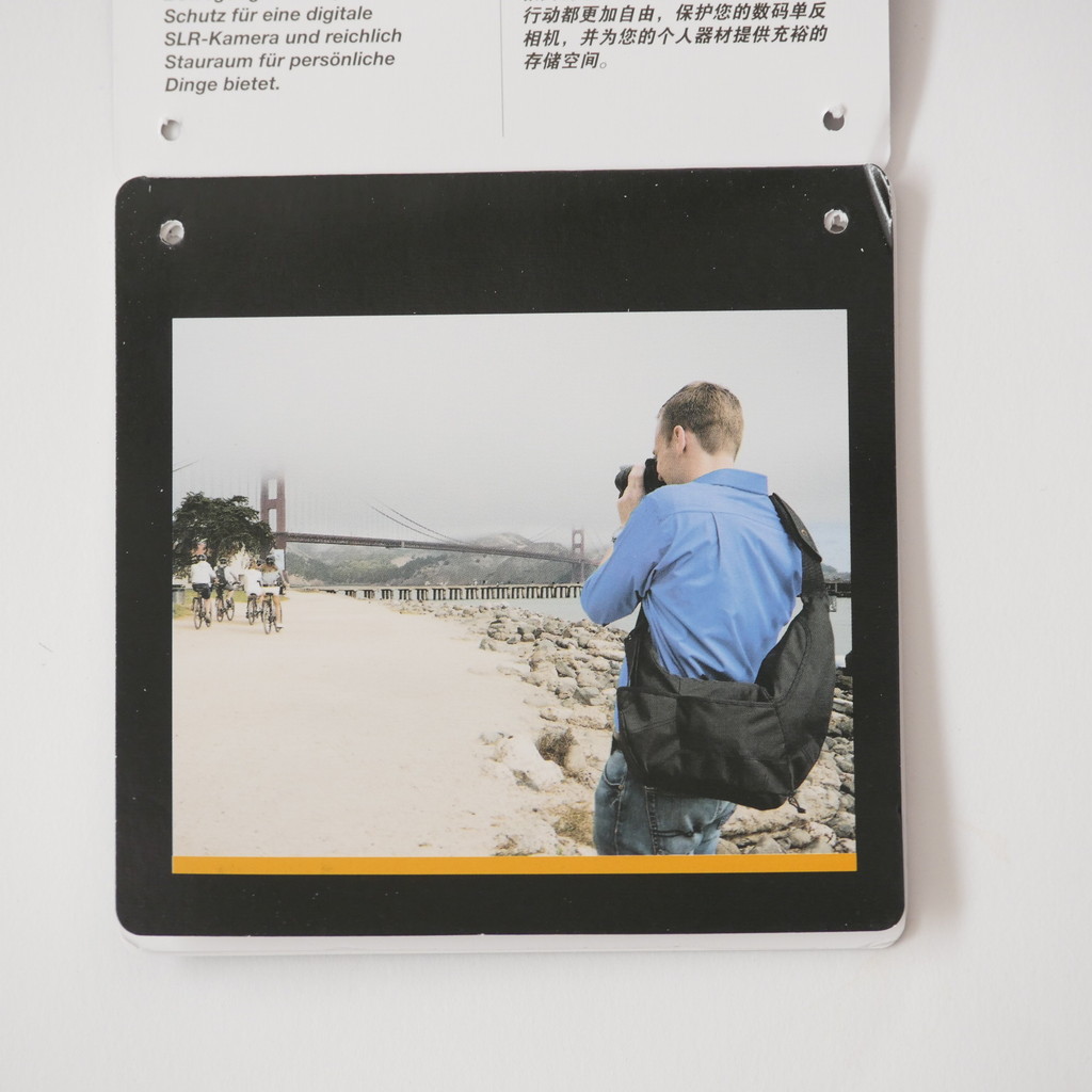 バックパックタイプの KATA KT DL-3N1-22 で不満だったのが、ちょっとした紙類の出し入れがすぐにできないところと、ペットボトルを入れておく場所がないところだったので、近場をうろつくときにはこのスリングバッグを使う予定。