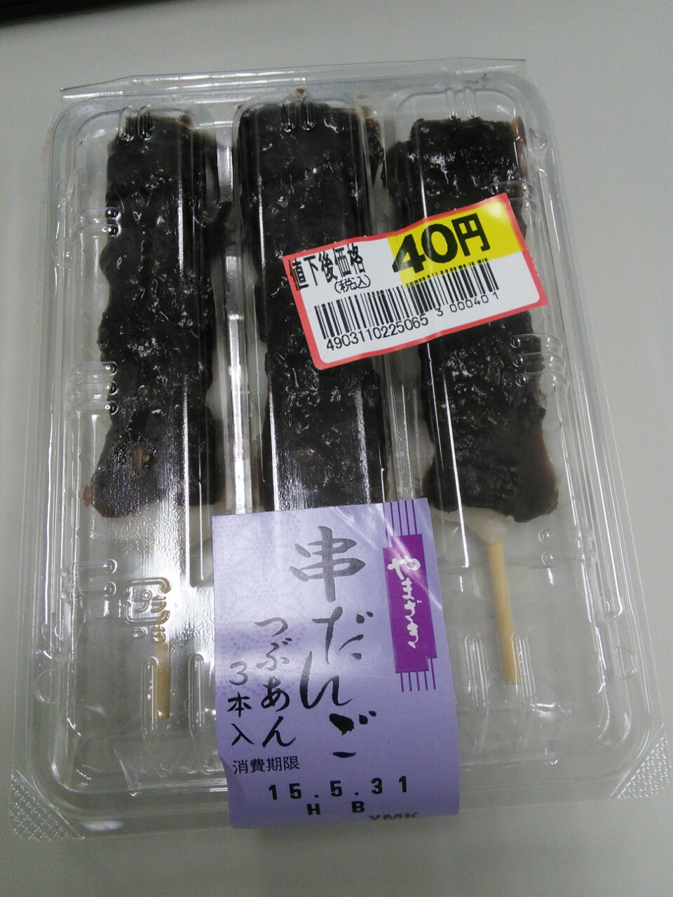 練習後の補食: やまざき 串だんご つぶあん。