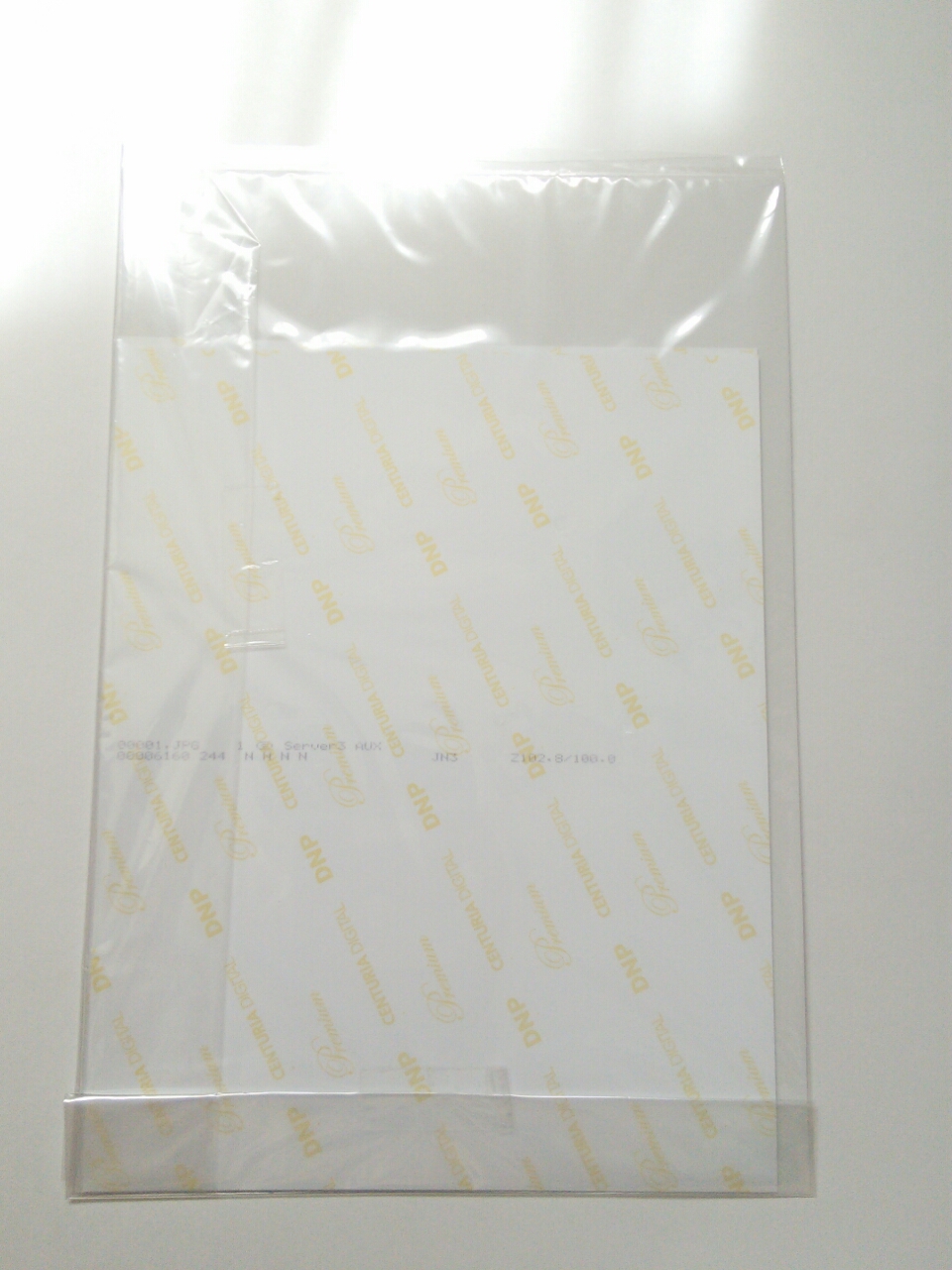 プリント裏面。台紙とともにプラスチックの袋に入れられて。