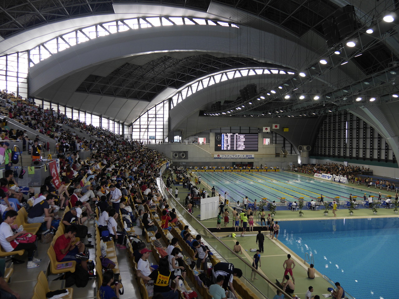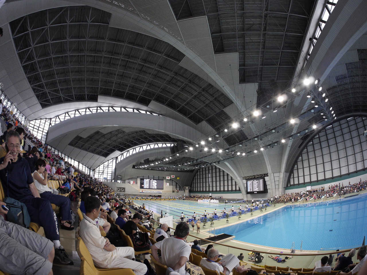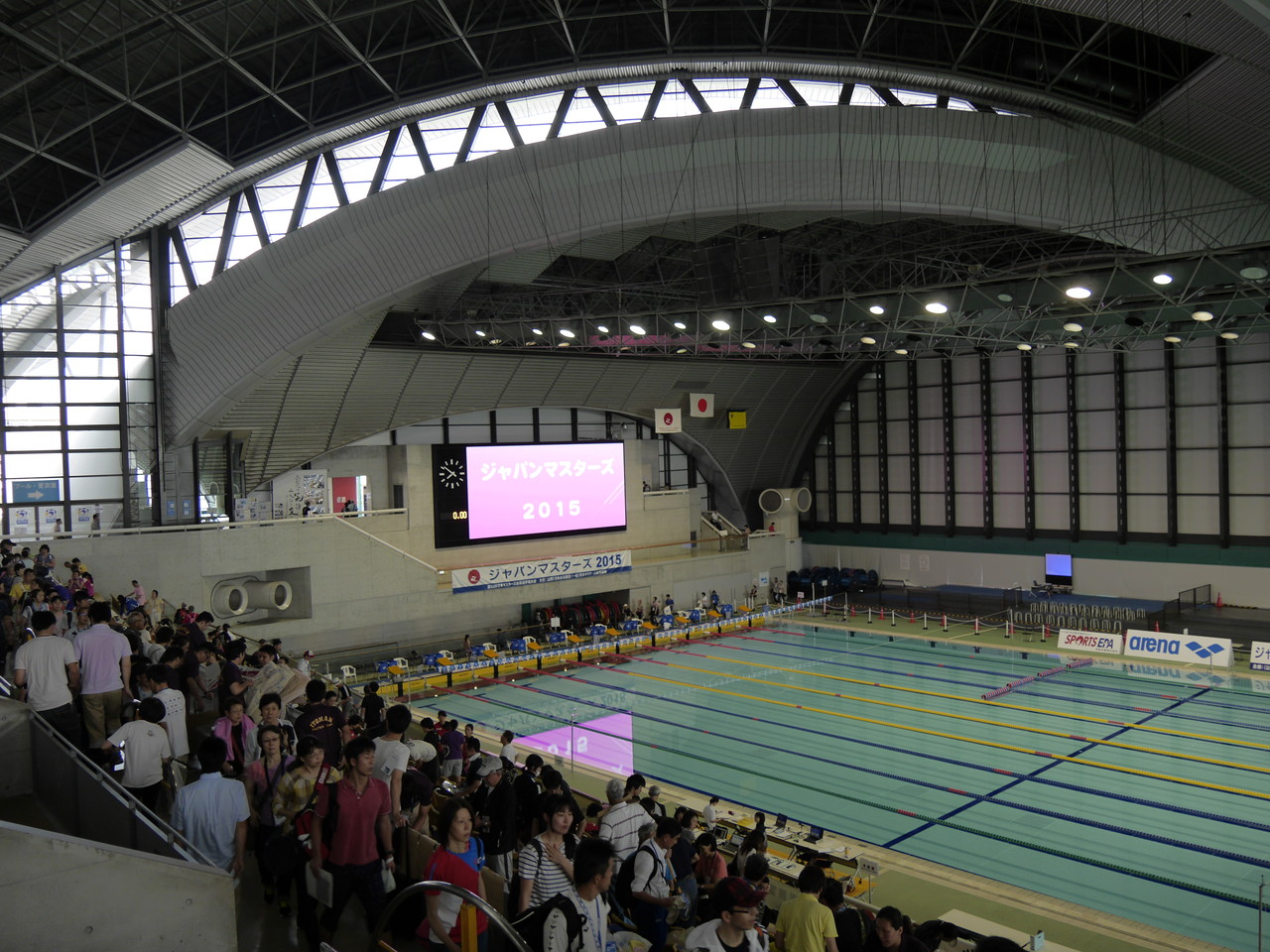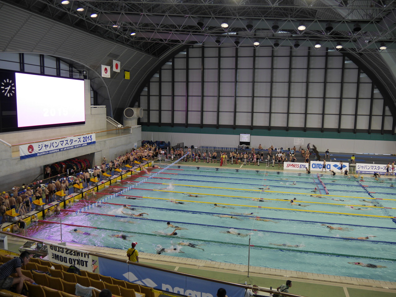 いつもは4日間の開催だが今年は5日間の開催で、レース進行はゆっくりめ。50mの競技以外は選手コールもあった。水温28℃、室温25℃、サブプール29℃の設定。スタート台は羽つき。