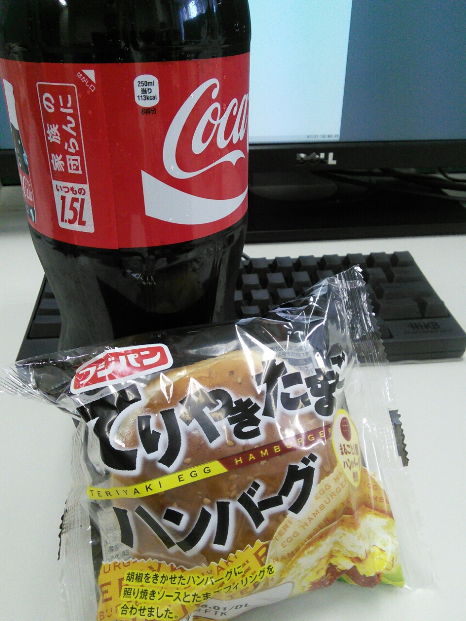 練習後の補食: フジパン てりやきたまごハンバーグ(323kcal,たん白質10.3g,脂質15.1g,炭水化物36.5g)。