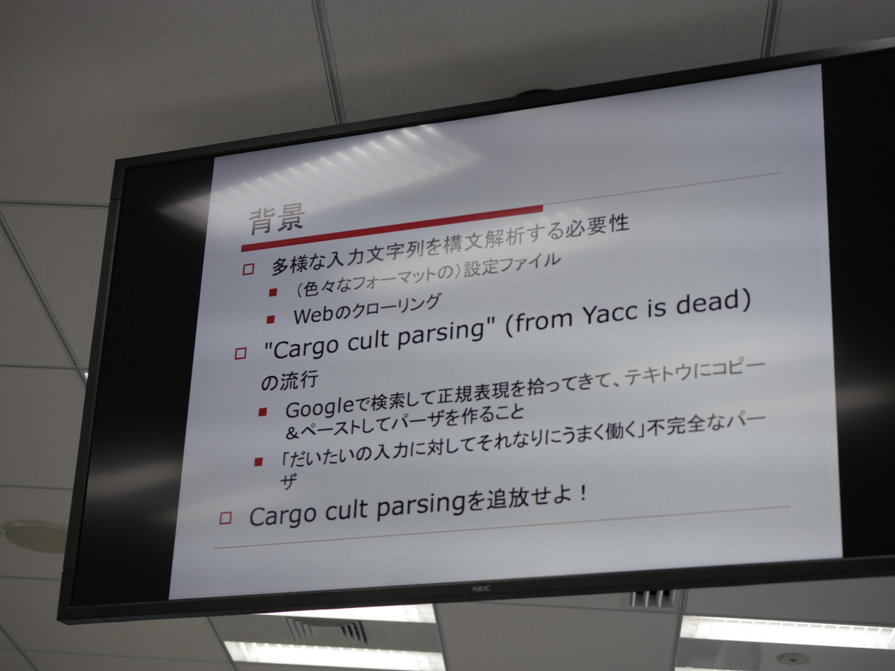 - Cargo cult parsing: 適当につくった、それっぽく動くパーサのこと。
