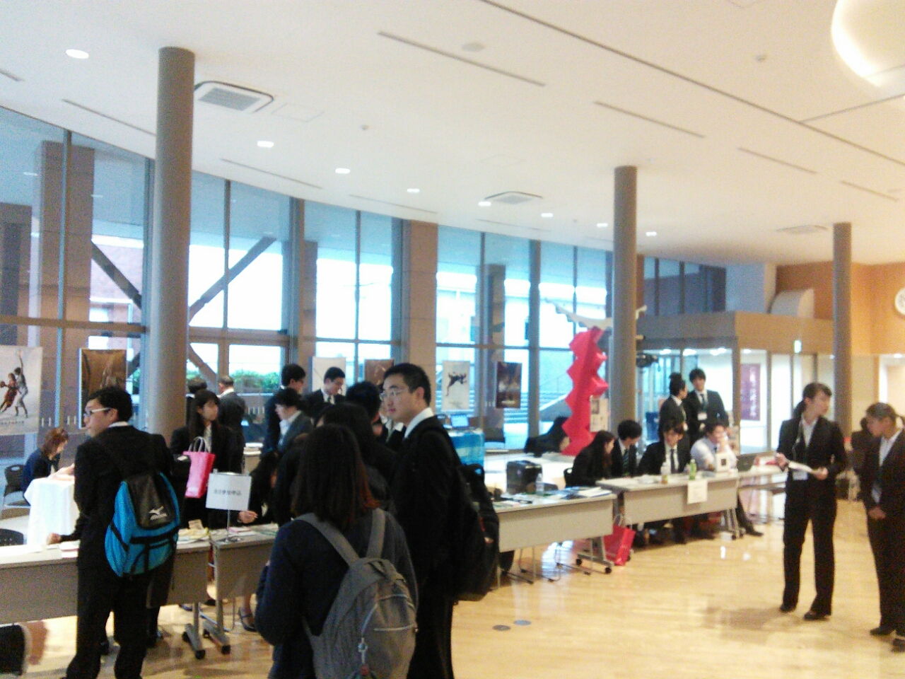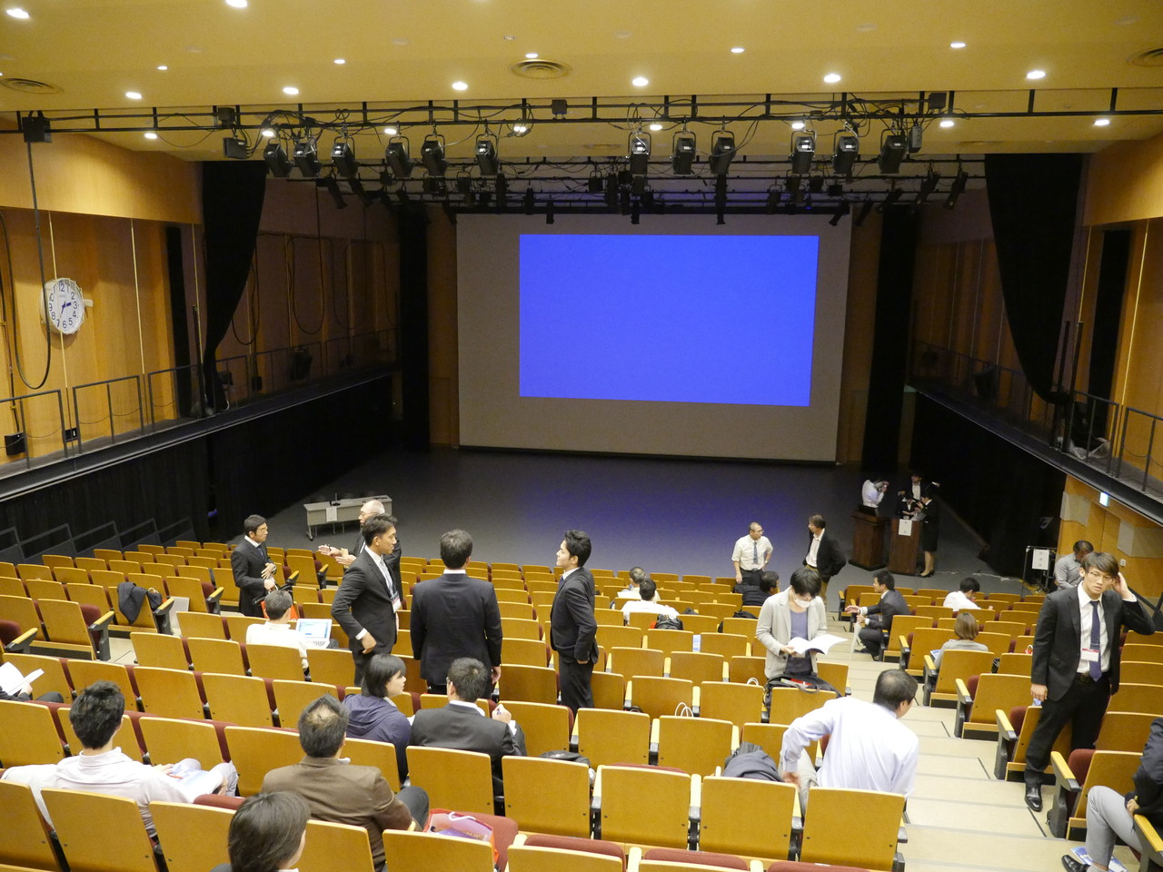 会場は普段はダンス系の体育館になっていて、床から椅子と机が出てくる構造になっているっぽい。
