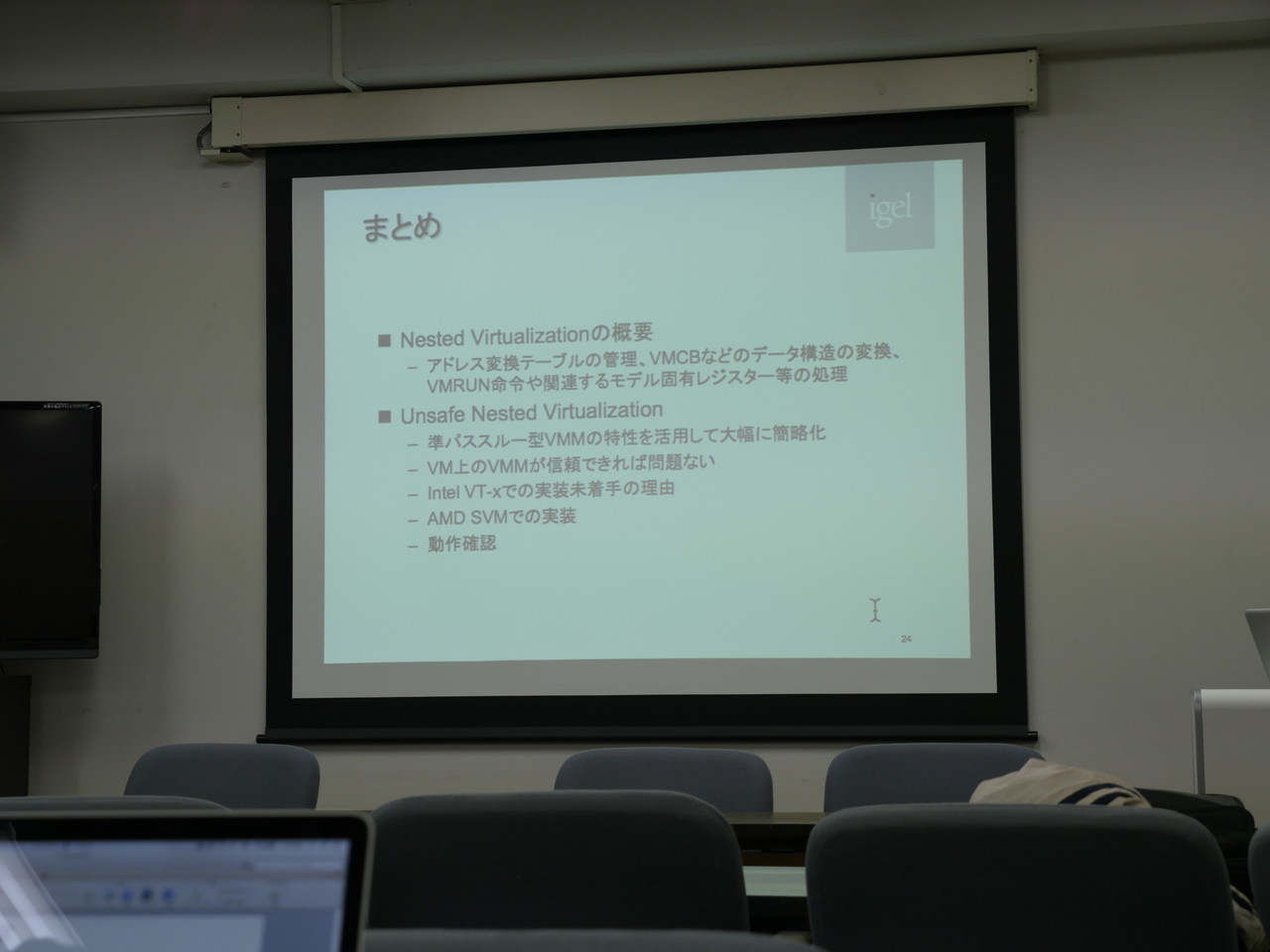 - Q: bitvisor on VMWareをやってみたことがあるが、nestedやる同期は?