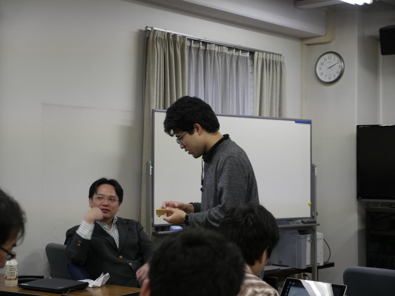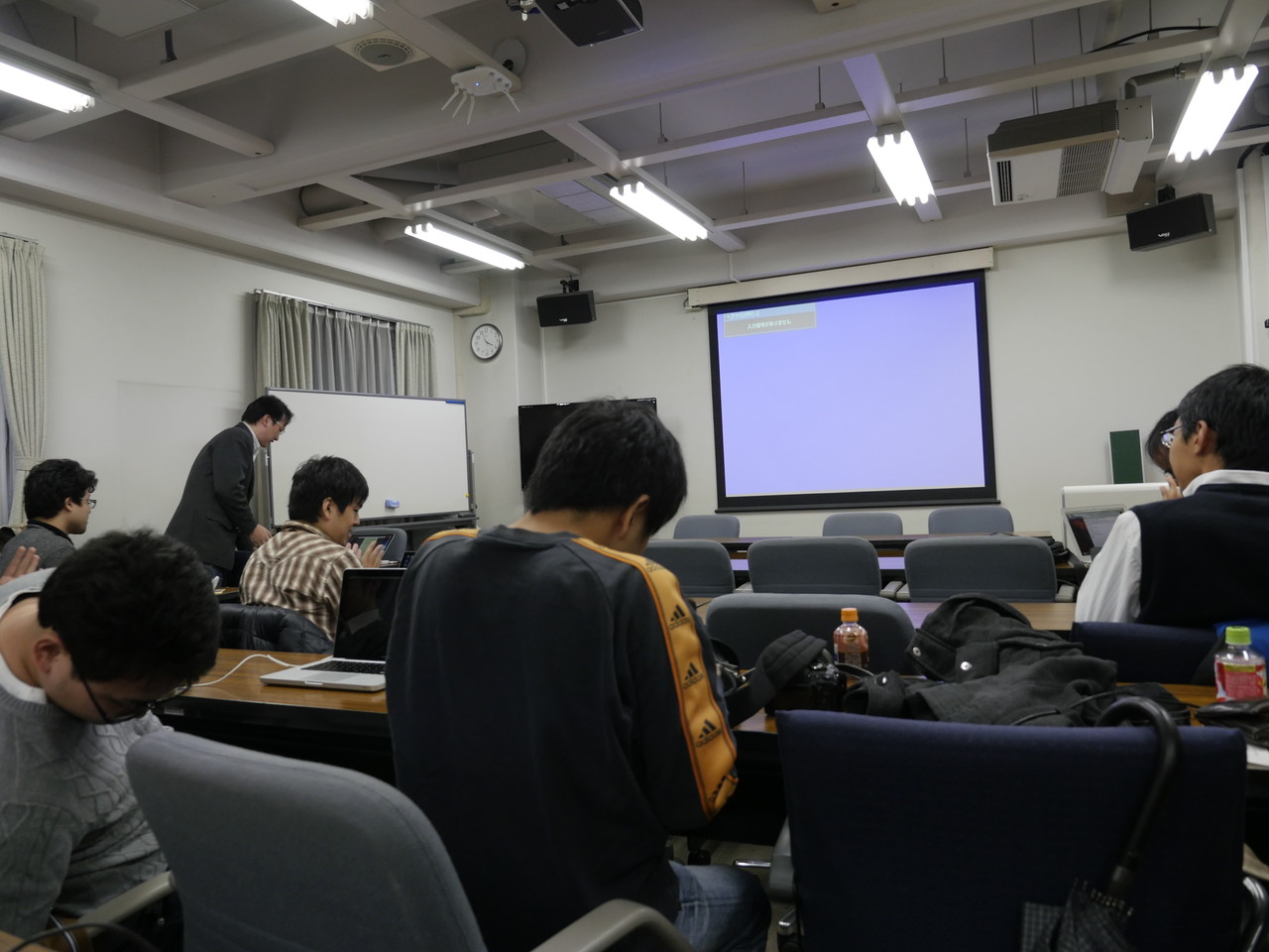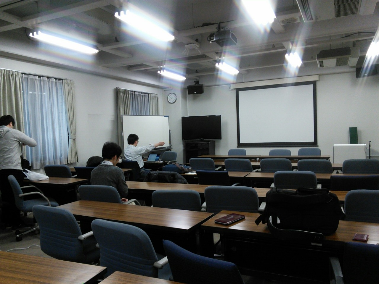 朝は雨だったので電車が遅延ぎみ。予定より10分くらい遅れて到着。人生2度目(今年2度目)の女子大潜入。WLANは使えないという事前アナウンスがあったのでモバイルルーターをもっていったが、理学部3号館2FにはWiMAXの電波は来てなかった。いつものようにNexus7をdocomo 4G(IIJmioクーポン切れなので200kbps)でつないでおいてBluetoothでテザリング。参加者は20人ほど。