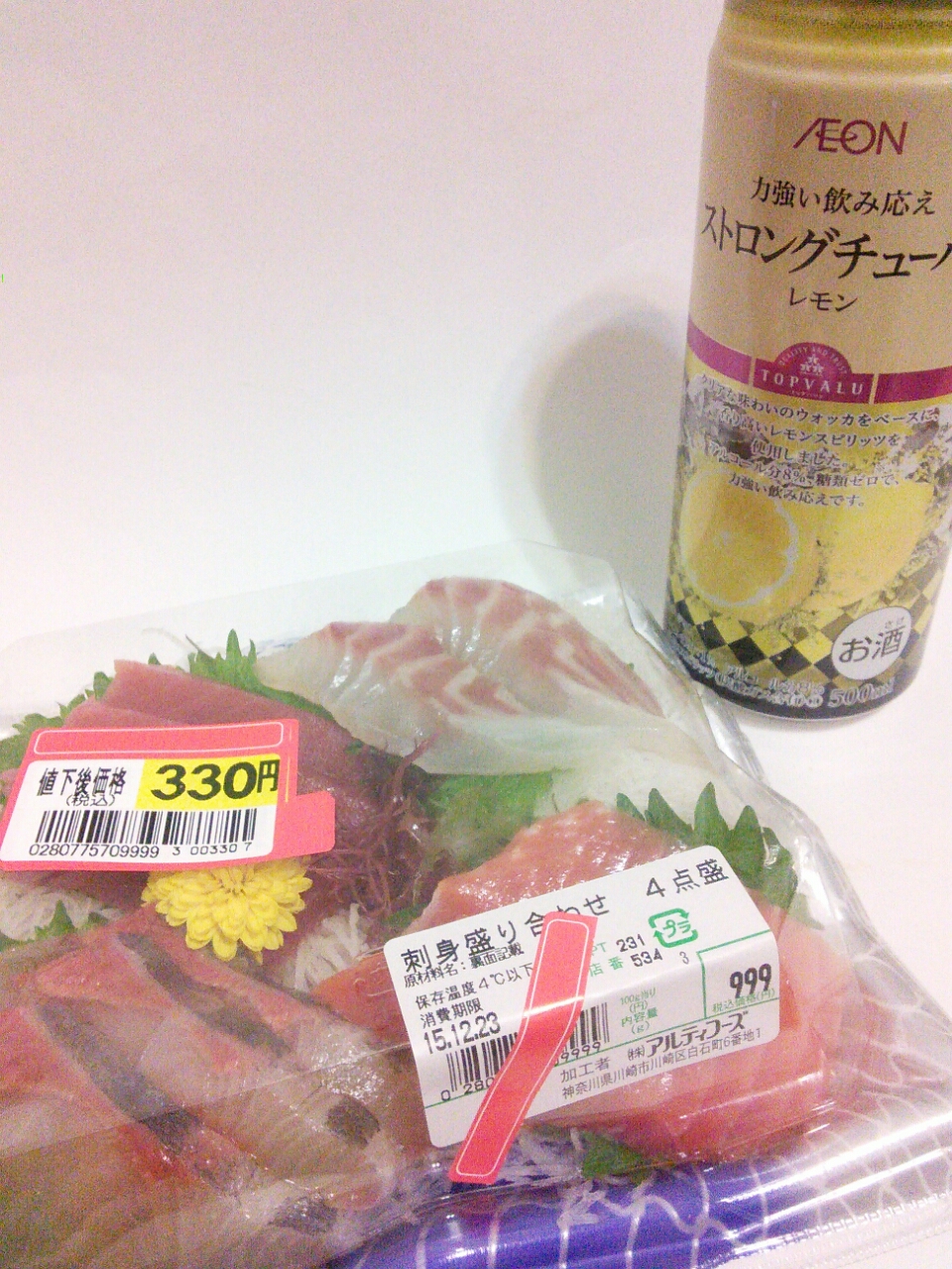 クリスマスムードだし、帰りにダイエーで安くなってた刺身を購入。