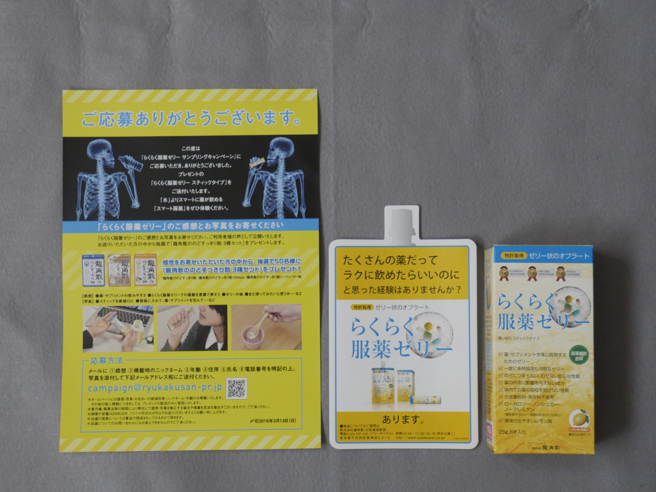 2016-02-05 父が錠剤の薬をうまくの見込めなくて困っているという話をきいてたので、twitterでながれてきた(プロモーション?)このキャンペーンに応募したら、2016-02-24届いた。
