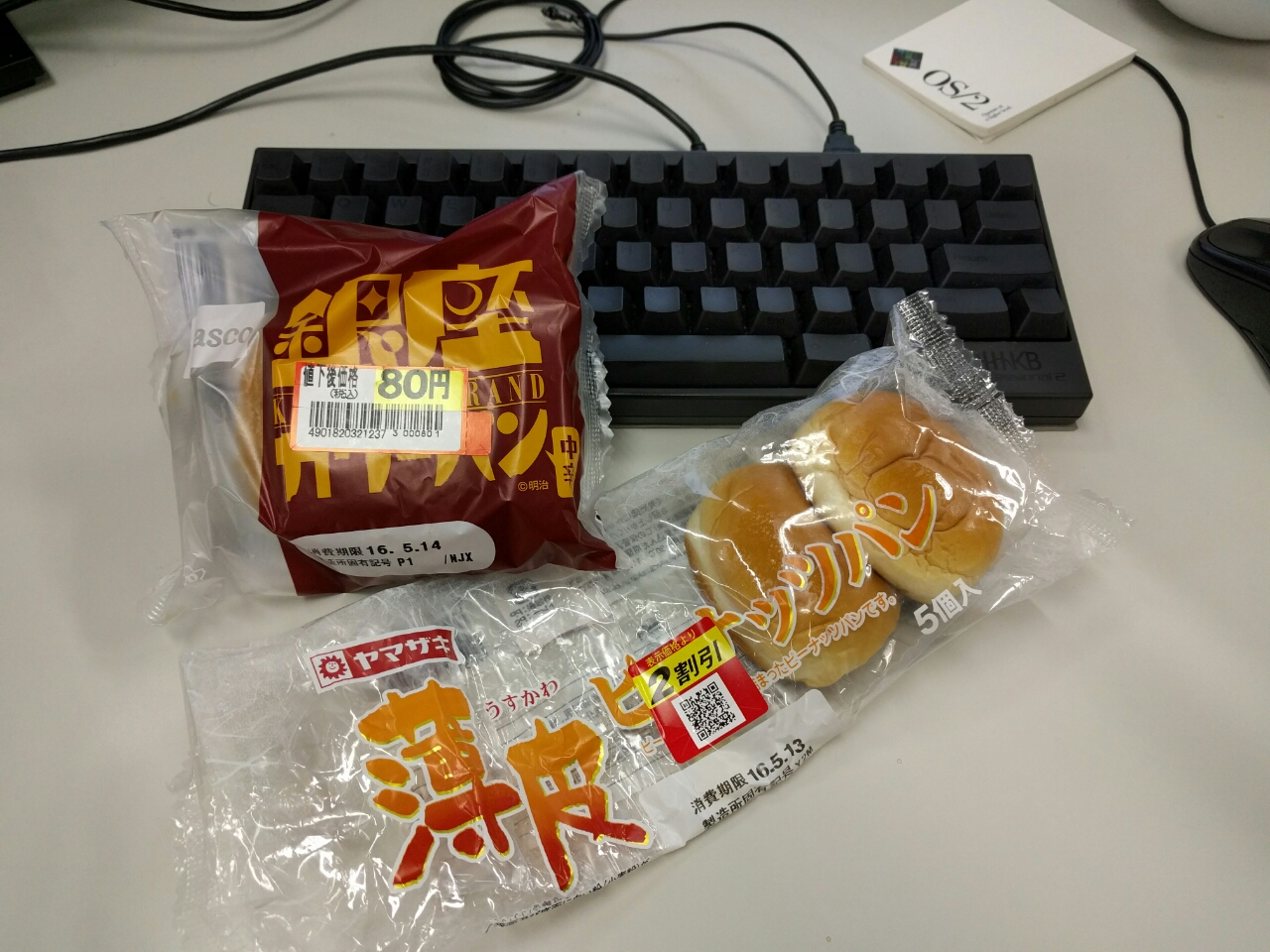 練習後の補食: ヤマザキ 薄皮ピーナッツパン(101kcal,たん白質2.4g,脂質4.1g,炭水化物13.6g *2)、