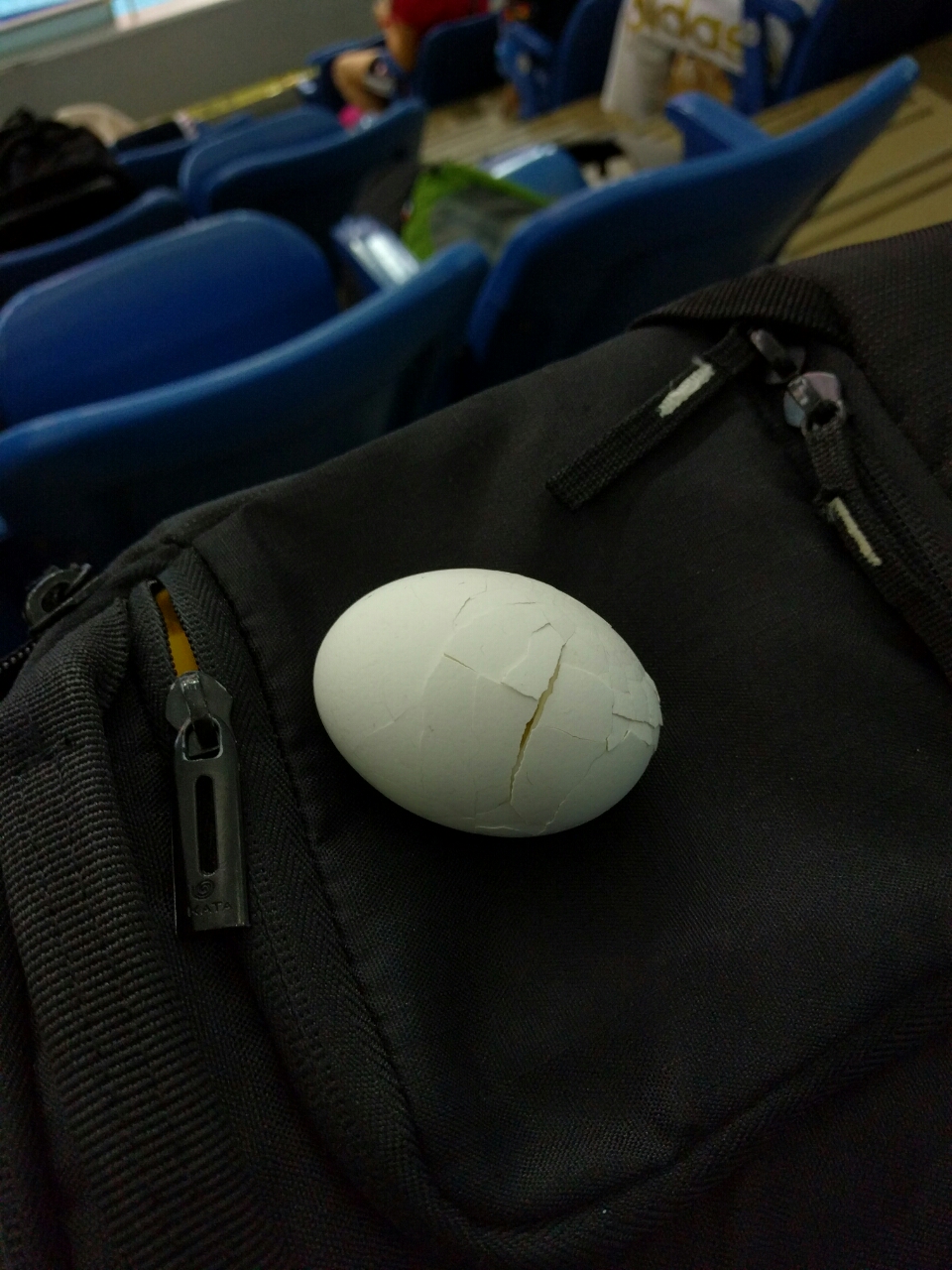 プールから上がってチームメイトが来るのを待ちながら朝食。