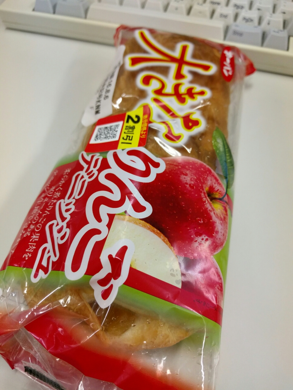 練習後の補食: 第一パン 大きなりんごデニッシュ(430kcal,たん白質7.7g,脂質19.3g,炭水化物56.2g)。