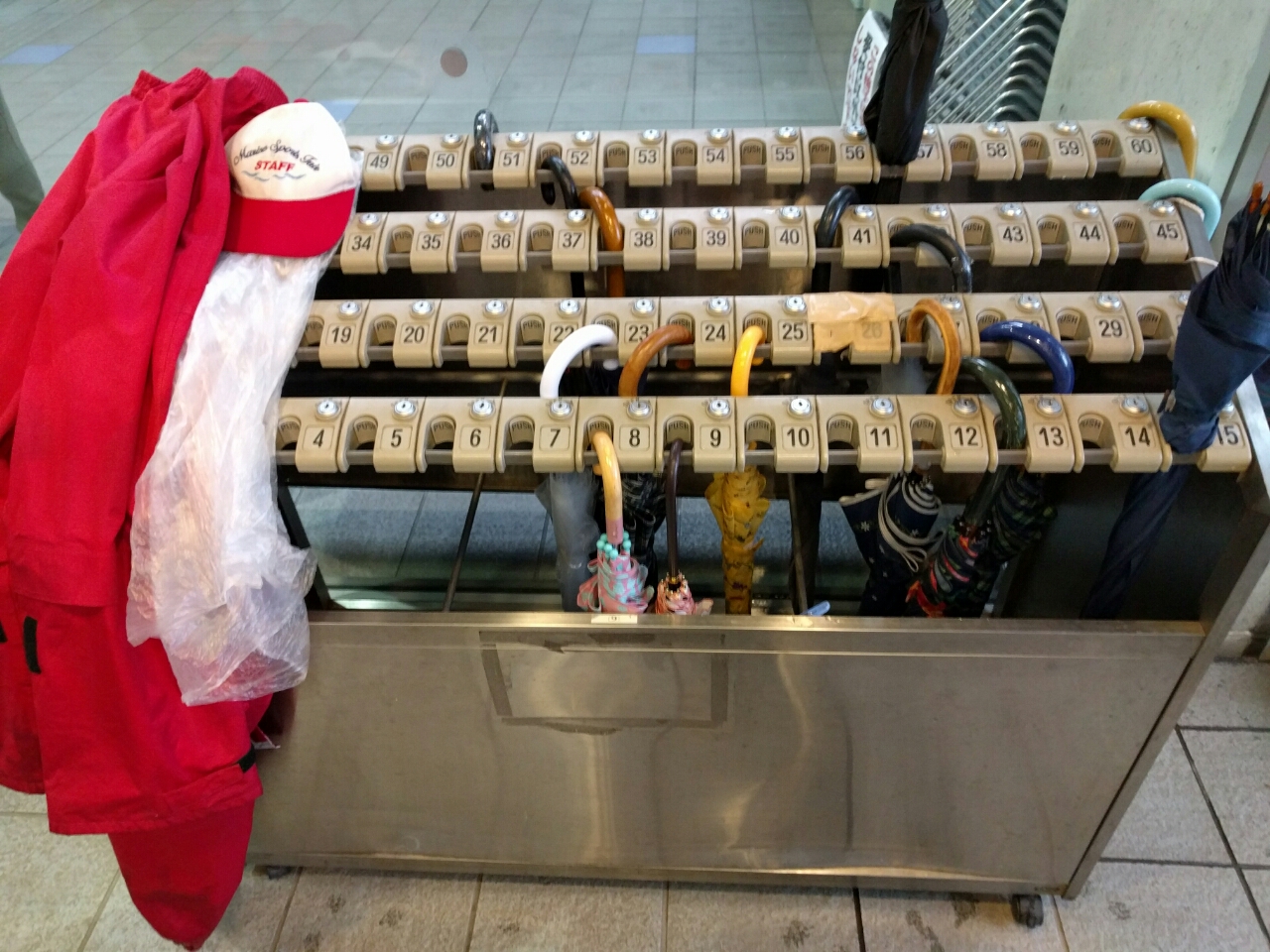 とても疑問だが、この人たちは傘をなぜここにかけておくのだろう?