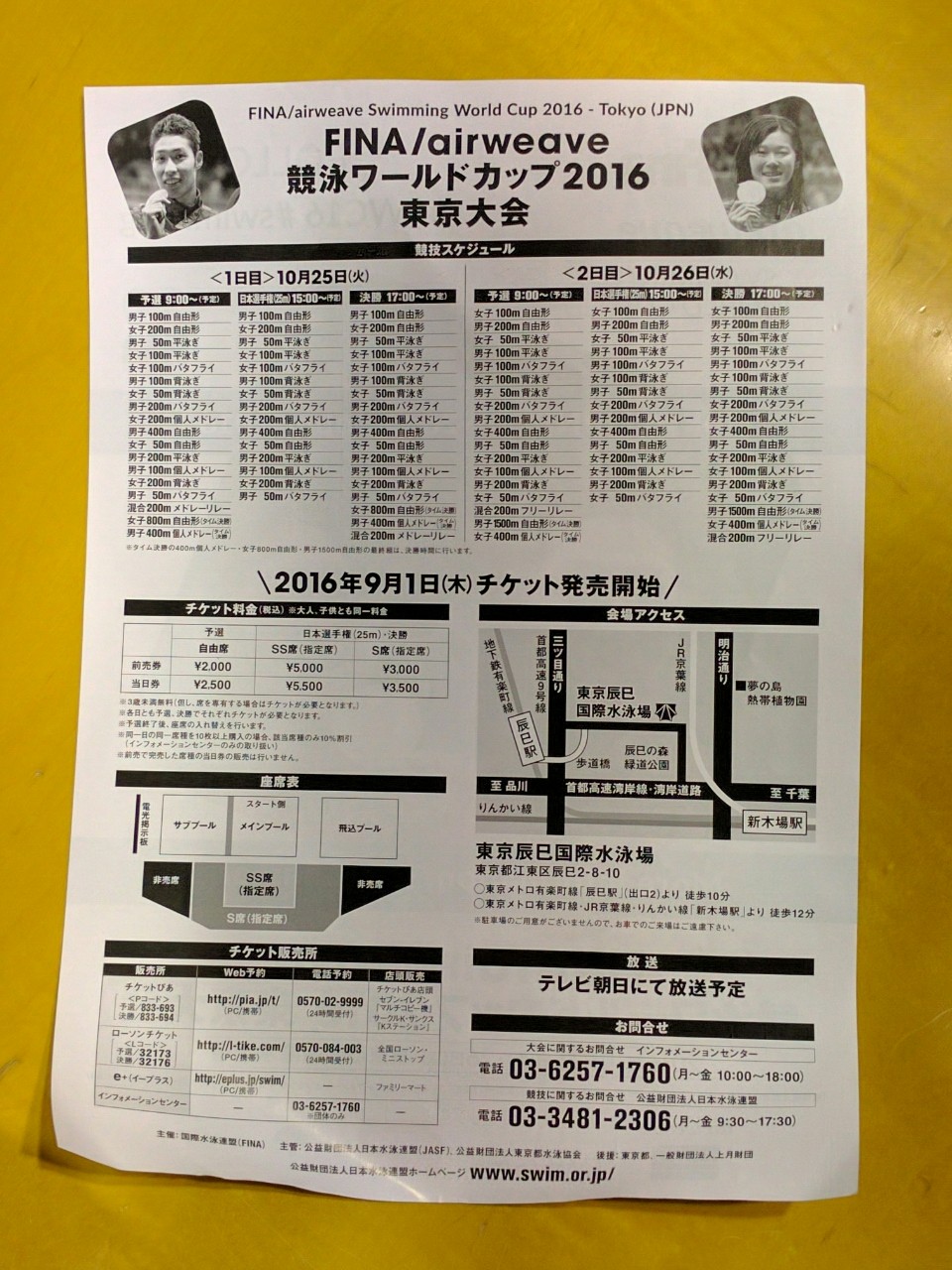 FINAワールドカップ東京大会のチラシがこっそり置いてあった。