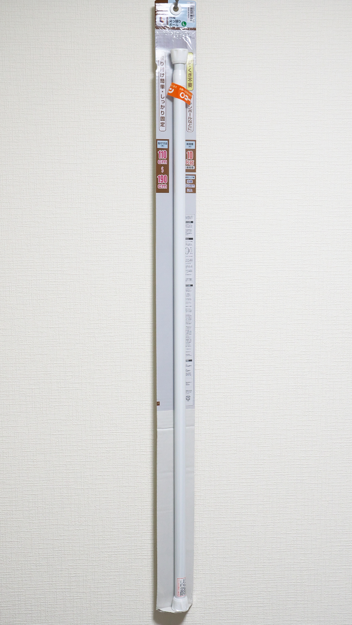 洗濯物を部屋干しするためにコーナンで突っ張り棒を購入。今のところ不具合なし。百均の細い突っ張り棒とはちがうな。