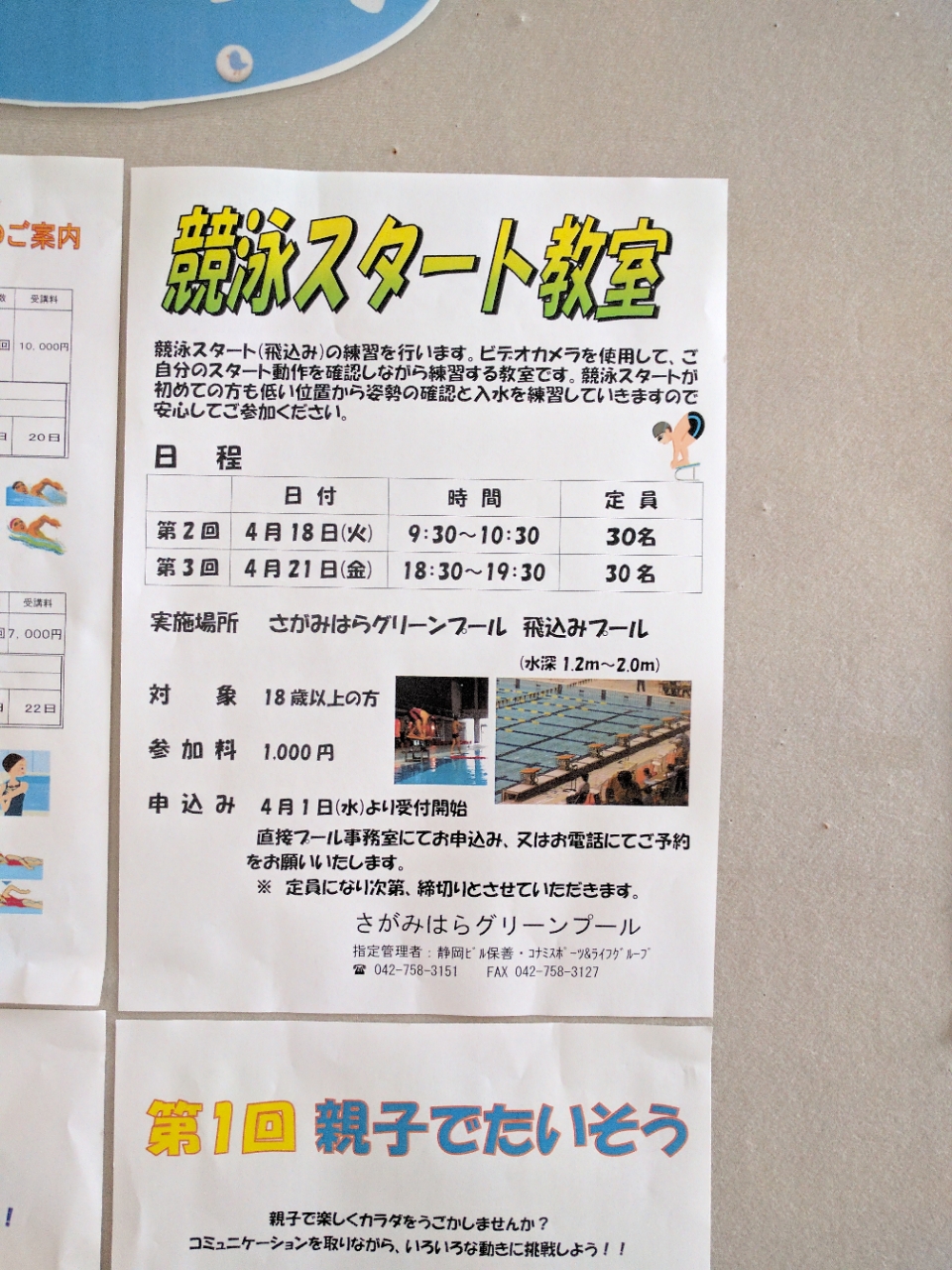 グリーンプールへ。長水路の水温が31.4℃と高かったのと、桜が満開でプールどころではないであろうことから、短水路はスカスカ。