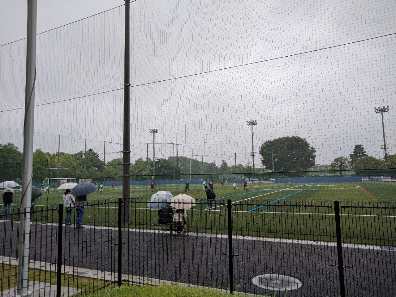 今日は朝から雨。沖縄と奄美が梅雨入りしたらしいが、関東は例年どおりならまだ半月後か。そこそこ雨が降っていたがグラウンドではサッカーの試合をやってた。